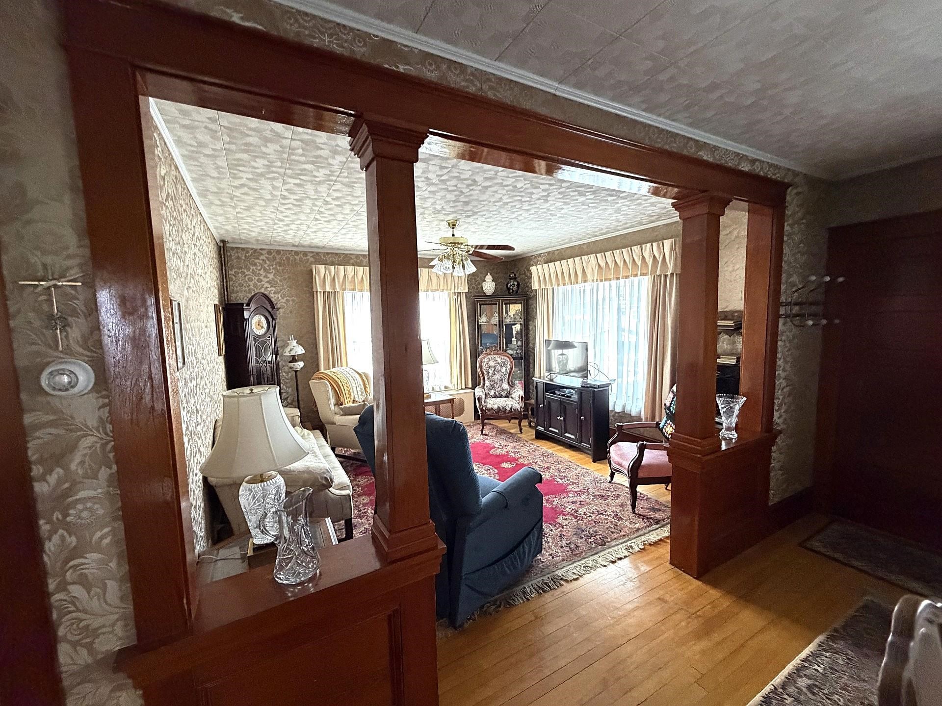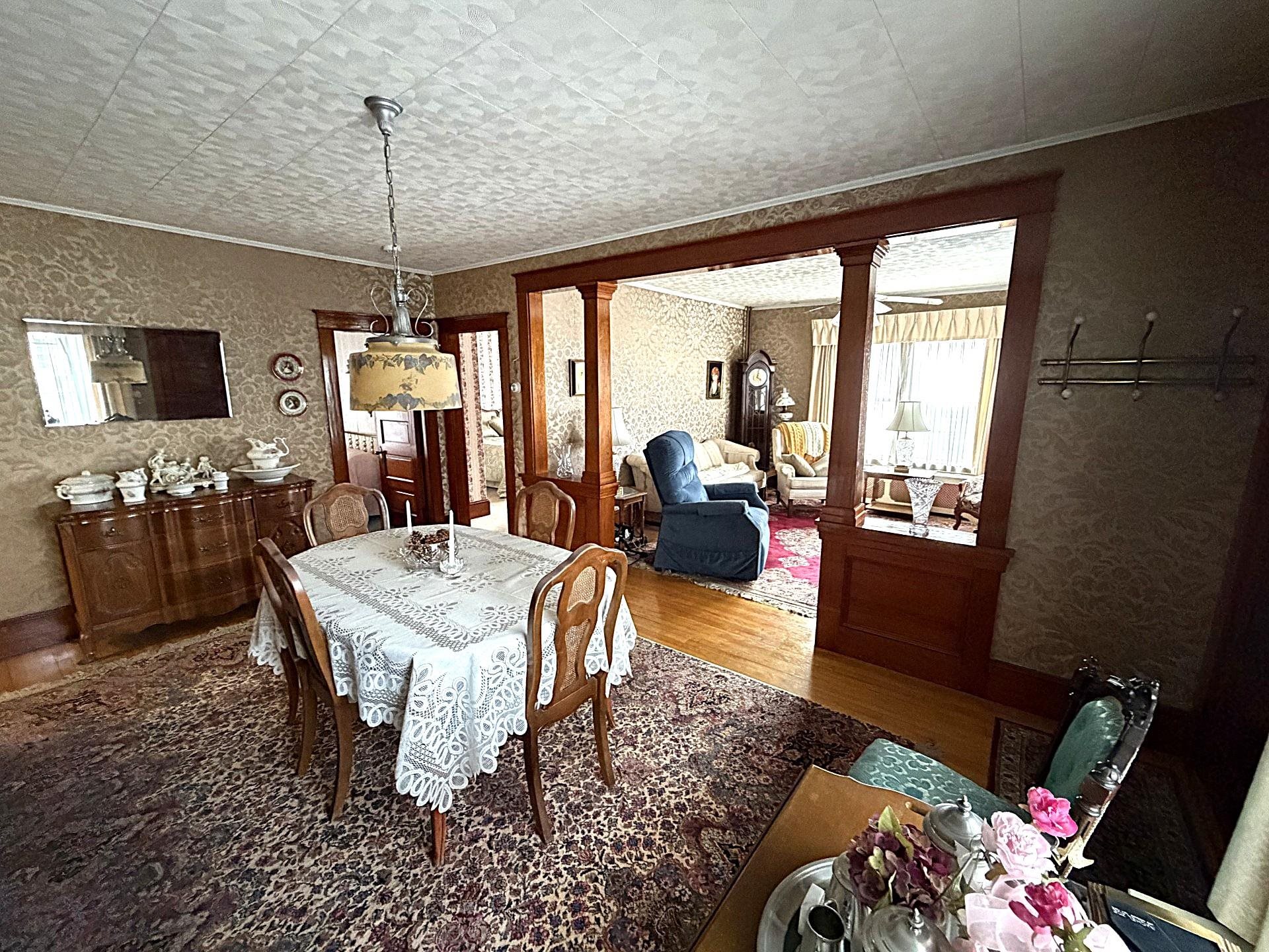 Income-Producing Two-Unit Property – Strong Cash Flow Opportunity Exceptional two-unit apartment building located in a desirable residential neighborhood. This well-maintained, fully up-to-code property offers excellent income potential and long-term stability, having remained in the same family ownership for nearly 60 years. The building consists of two separate units with individual electrical meters and breaker panels, allowing for simplified expense management. The first-floor main unit features two large bedrooms, hardwood floors throughout, a spacious living room, eat-in kitchen with pantry, full bathroom, and abundant closet space—ideal for owner occupancy or premium rental income. The second floor offers two oversized bedrooms, with private storage shed. A porch provides private access to the upper units, closed in and eliminating winter maintenance concerns from exterior stairways. The basement has dual access from both the bulkhead and interior stairway, adding flexibility and easy access appeal. A major value-added feature is the extensive garage and paved parking setup: a two-car garage detached with concrete floors, electronic overhead door, and walk-in access doorway. The fully paved yard provides ample parking and space for recreational vehicles, ATVs, or snow machines—an uncommon and desirable amenity for tenant. Low-maintenance vinyl siding on both the building and garages enhances durability and reduces operating costs. The stately façade and strong curb appeal further increase tenant demand and neighborhood value. This is a rare opportunity to acquire a stable, dual investment property with excellent infrastructure, strong rental flexibility, and long-term upside in a solid residential location.
