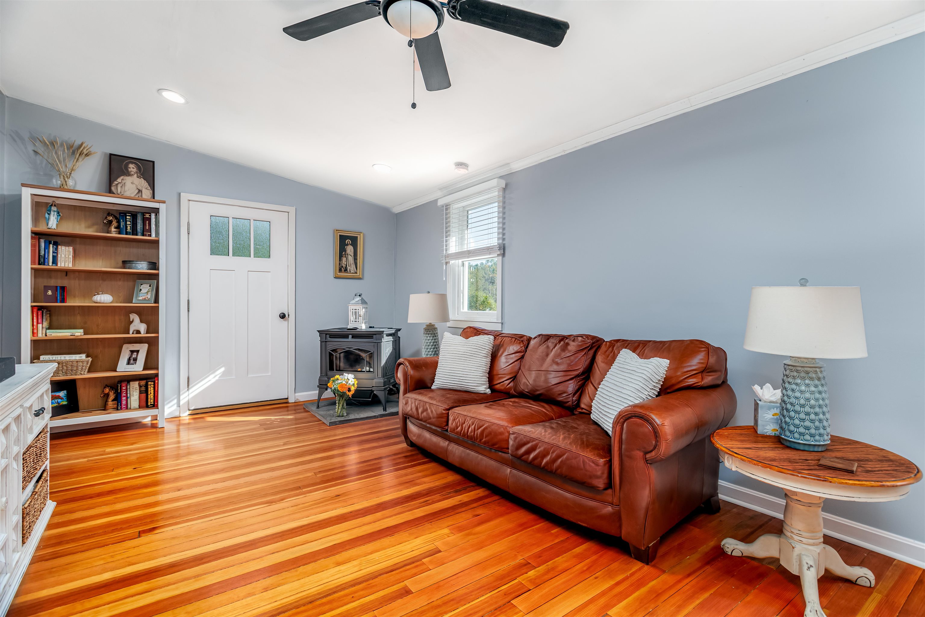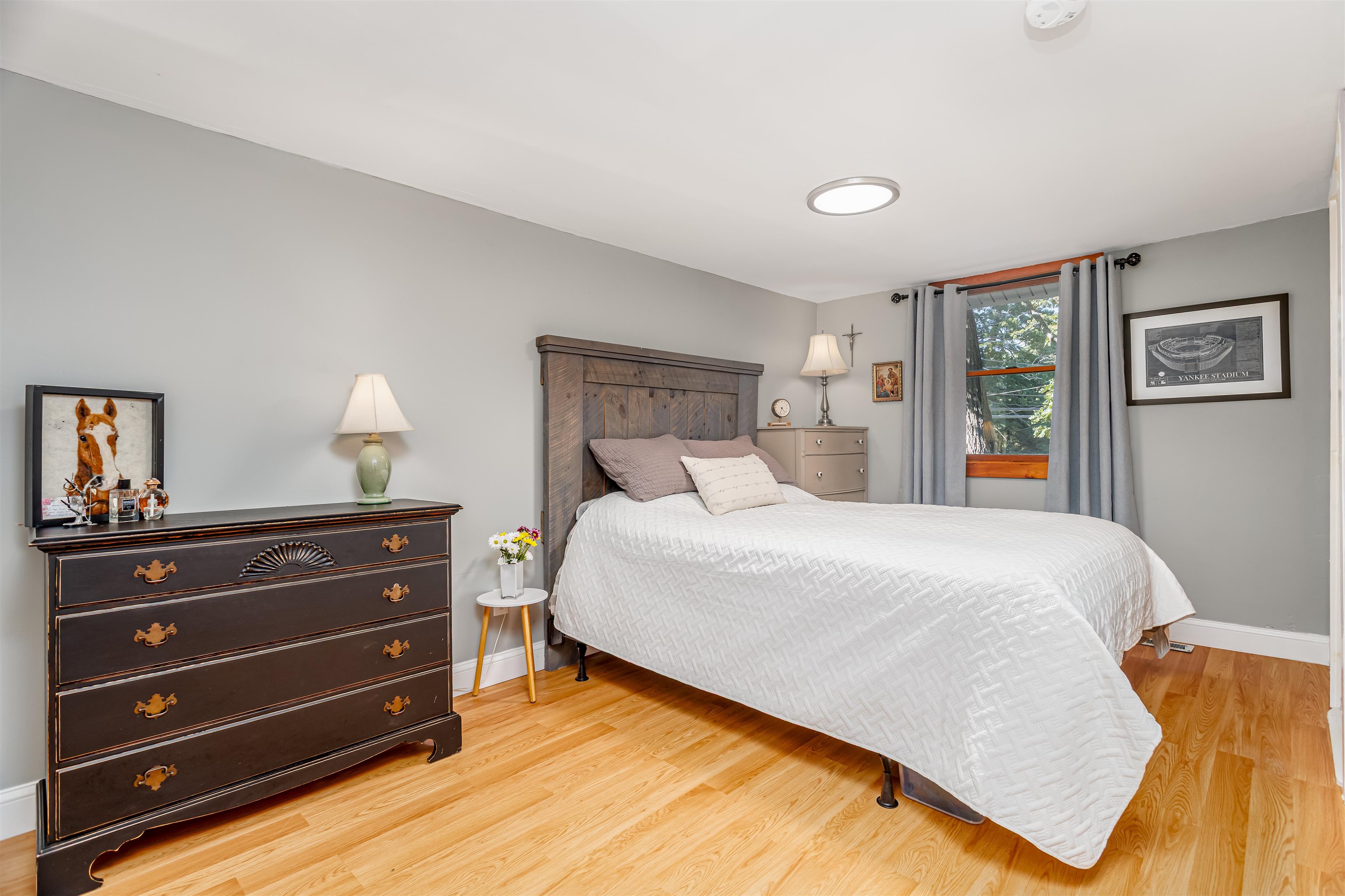 Fully renovated in 2022, this lovely and inviting Ranch style home on 2 expansive acres, melds modern comfort and classic countryside charm. A fresh palette of whites and warm neutrals complement original hardwood floors in the living/dining room and continues with warm-tone flooring and stylish accents throughout. The breezeway entry with rustic wood clad walls opens to the updated kitchen with newer appliances, 1st-floor laundry, and space perhaps, for a small center island. Open living and dining area also features a Hampton cast-iron pellet stove that fills the home with cozy warmth during the fall and winter months. Just off the living area are two comfortable bedrooms and lovely full bath with soaking tub, stunning glass tile walls, and stained-glass accent window that lends a subtle nod to the home’s vintage dawn. Newer septic and leach field, vinyl siding and trim, asphalt shingle roof, vinyl windows in select rooms, and mini paver patio. Outdoors, enjoy amazing meadow views, refreshed shed, and plenty of open-air space for relaxation or play. Known for its rural beauty and highly rated Hollis/Brookline schools, Brookline offers both countryside living and convenience—just 30 minutes to Manchester Airport, about an hour’s drive to Boston and just minutes to the MA border. Thoughtfully updated, move in ready and with a quick close preferred, this home is the perfect blend of modern living, charm and efficiency. Schedule your private tour today – before it’s gone!