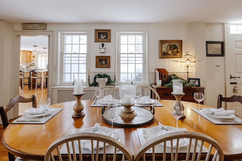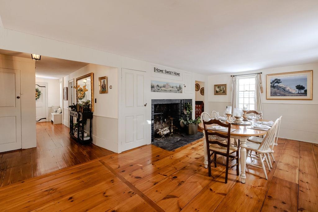 Luxury Historic Colonial! Timeless elegance awaits just moments from the Historic Fitzwilliam Common. This exceptional circa 1790 New England Colonial Post & Beam is set amid a private, picturesque landscape. Sited proudly on nearly 35 acres of landscaped gardens, open pasture, woodland, trails, and classic stonewalls, the property offers sweeping four-season views and an enduring beauty seldom found today. Meticulously restored and thoughtfully enhanced, the home blends 18th-century craftsmanship with modern comfort. Distinctive architectural details—including a traditional gable roof, twin chimneys, 6-over-9 windows, and quoin-accented corners—underscore its historic character. Wide red pine floors, believed to be milled from trees on the property, lend warmth and authenticity throughout the main house. The residence features three bedrooms in the main home, complemented by two additional rooms and a full bath in the 1931 addition above the kitchen—ideal for guests, extended family, or private workspace. An inviting, flowing layout offers generous living and dining areas, perfect for hosting gatherings. Seven fireplaces including one with working woodstove. The grand living room showcases twin fireplaces with original beehive ovens, a centerpiece of the home’s historic charm. Recent upgrades—including a new roof, new heating system, new deck, granite counters and island, an on-demand generator, and fresh exterior paint—provide peace of mind and refined convenience. The impressive 2-story barn (54' x 30') offers two horse stalls, a workshop, and an expansive second level suitable for storage, studio space, or future adaptation. Surrounding open fields create an ideal setting for horses or other livestock. Rustic 6 hole backyard golf course and a Bocce court. A scenic rail trail lies just a short walk away. A truly rare offering, this estate is a timeless treasure that captures the essence of New England’s historic beauty, privacy, and pastoral serenity.