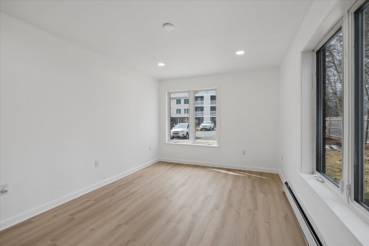 Welcome to this immaculately maintained, and lovingly updated first-floor garden-style condo offering comfort and convenience. Step inside to find beautiful waterproof luxury vinyl plank flooring that flows throughout the living spaces, creating a warm and inviting atmosphere. The spacious kitchen features a desirable double oven and newer appliances while the updated full bathroom adds a fresh, modern touch. This well-designed unit includes two generously sized bedrooms, two mini splits, and convenient IN-UNIT laundry for added ease. Relax or host guests on your own private patio, shaded under the trees. The community allows up to two pets with board approval, making it a great option for animal lovers. Situated in a convenient location close to the Goffstown Rail Trail, shopping, dining, and commuter routes, this condo combines low-maintenance living with everyday accessibility. Don’t miss this wonderful opportunity! Showings begin at the open house Friday 4pm-6pm.
