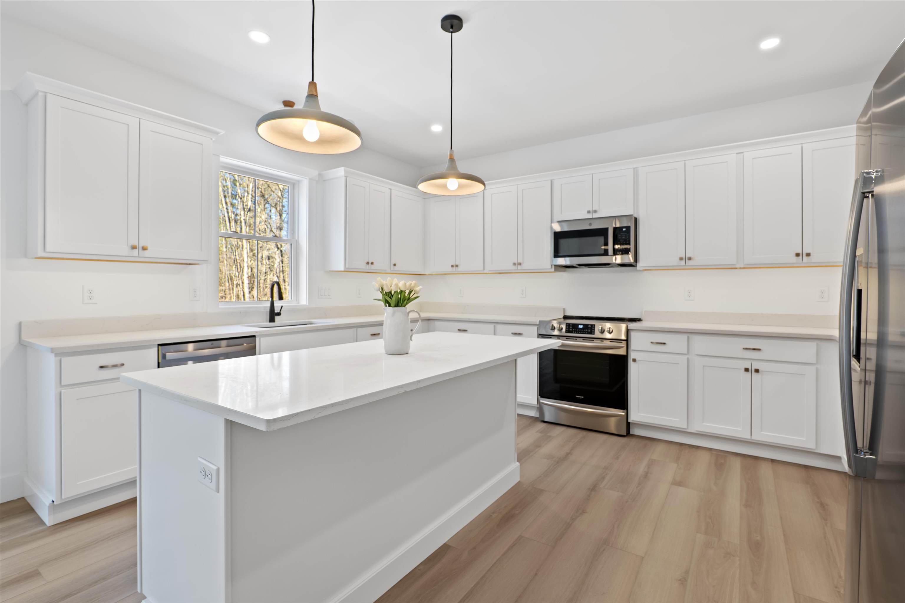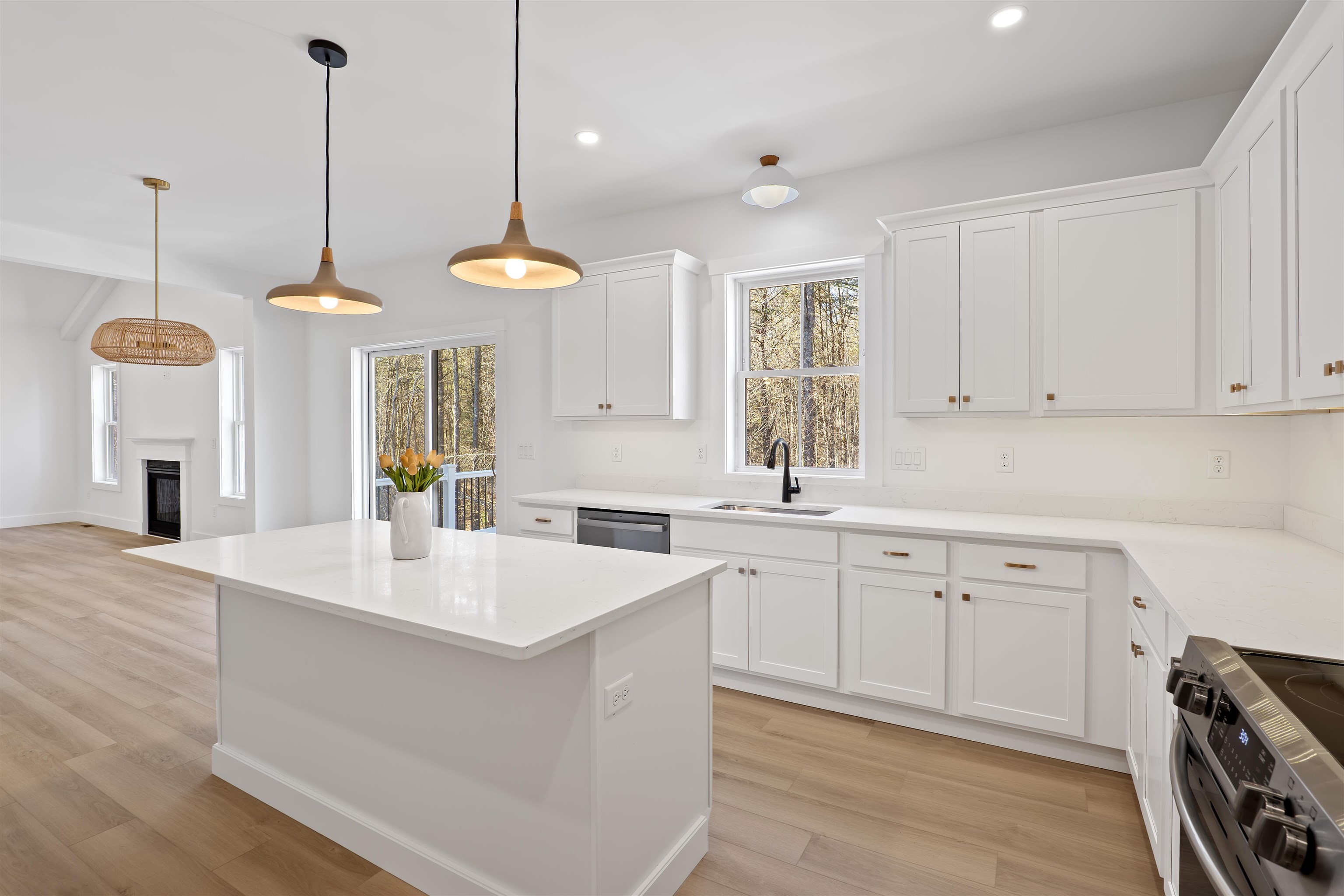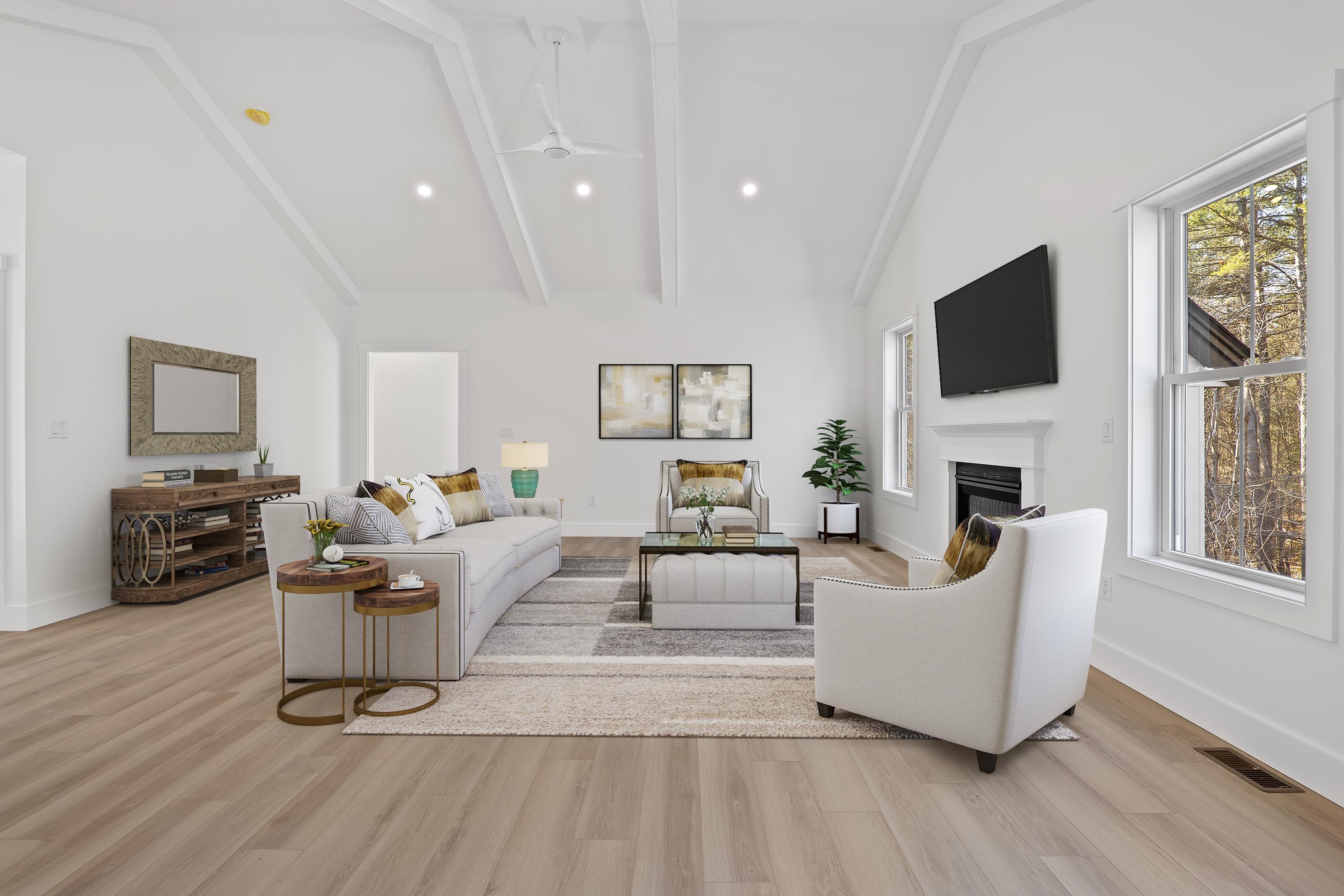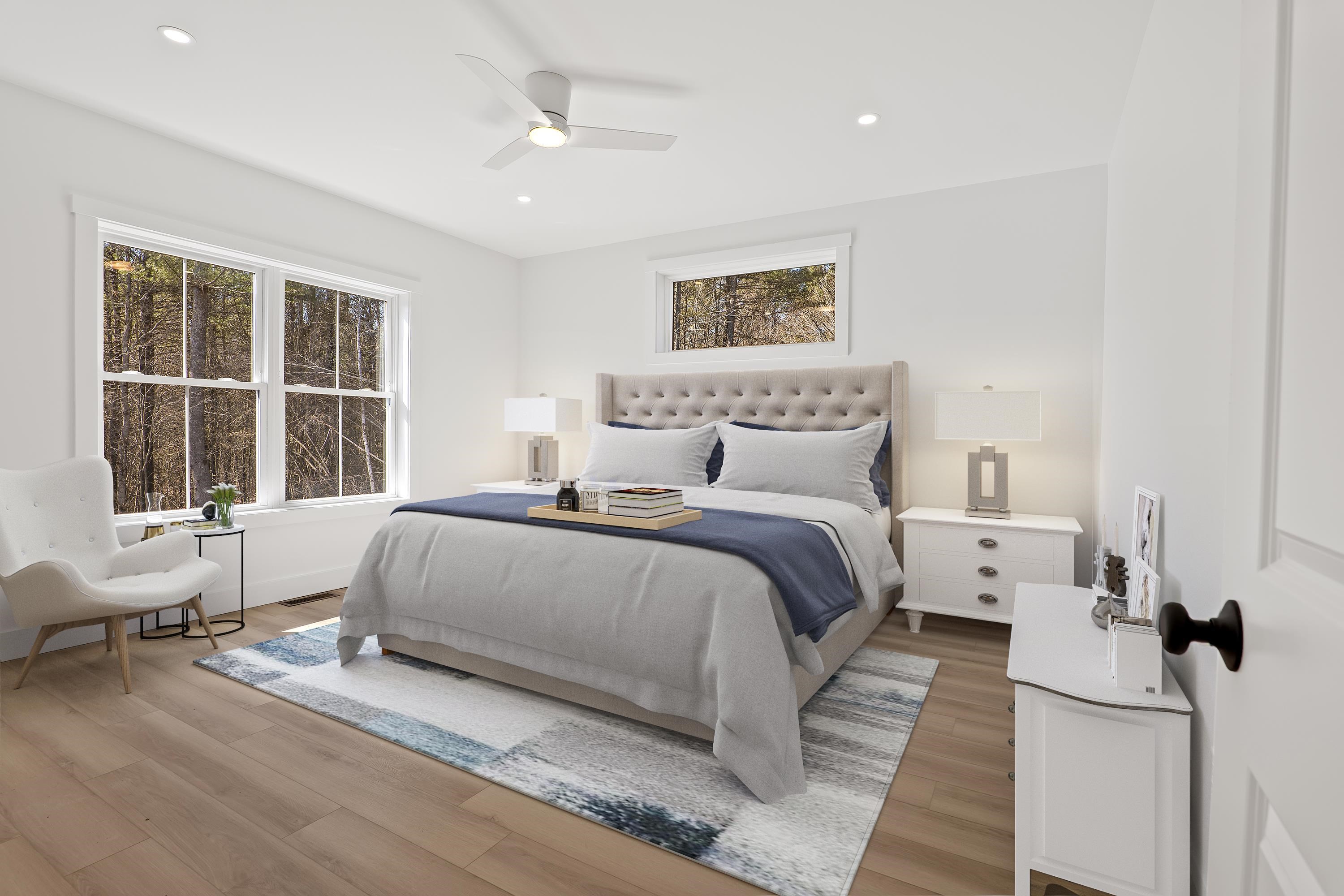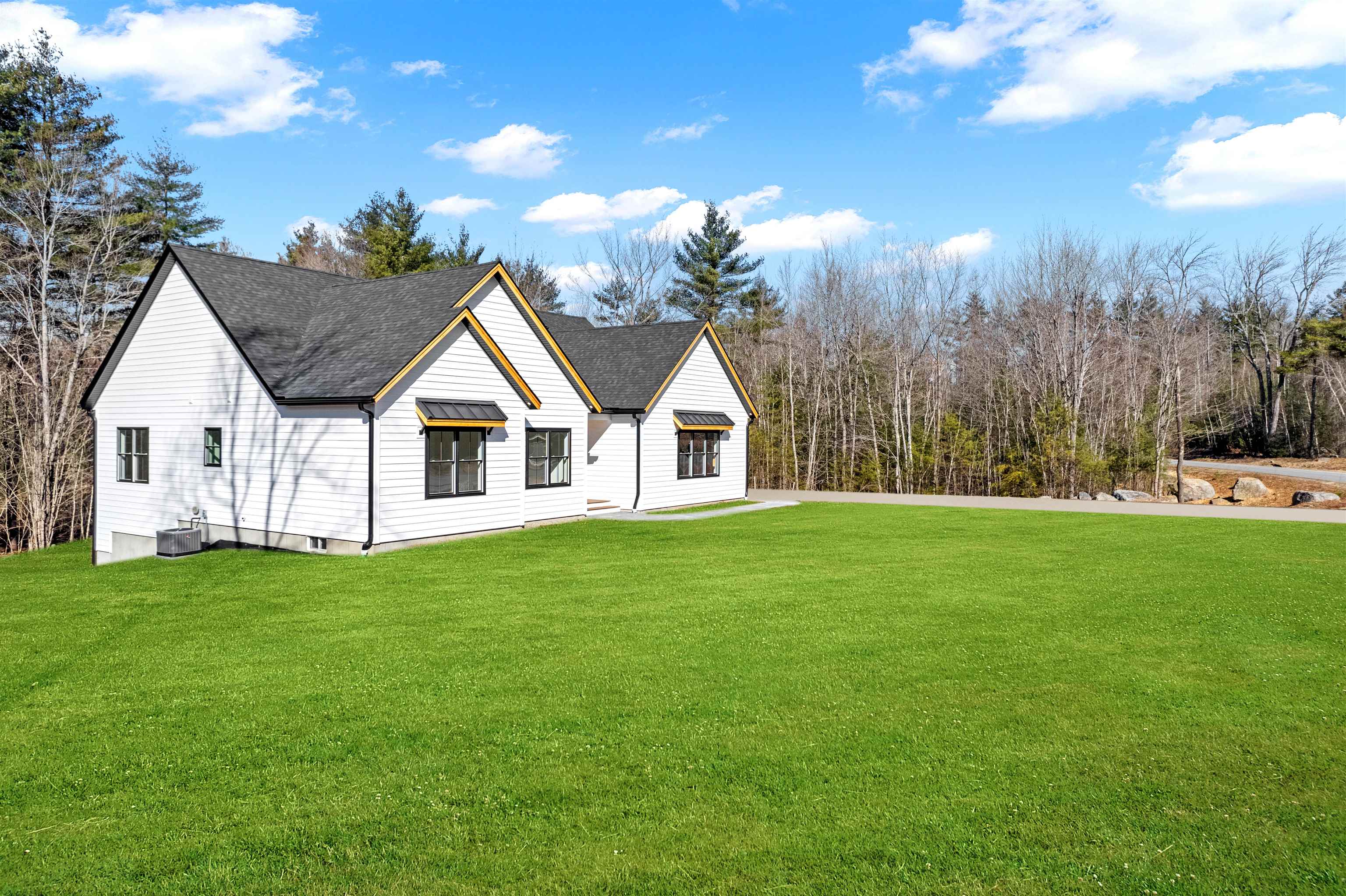 Welcome to this brand new, turn-key 1882 SQ FT 3 bed 2 bath. This home has many upgrades, 9ft ceilings, cathedral great room ceiling, gas fireplace, central A/C, tile shower, 8ft front door, LVP flooring through whole house, quartz countertop, stainless steel appliances, walk out basement, large 5 ac corner lot, high speed internet available. Driveway to be paved in spring, and hydro seed to be completed in spring. Moose Brook LN is a quiet neighborhood which is almost all built out. Hancock is a quintessential new England town, about 2,000 residents with a beautiful downtown, the Paul Revere's #236 bell chimes at the Hancock meeting house on the hr! Just Mins from Peterborough. Book your showing today. PHOTOS VIRTUALLY STAGED.