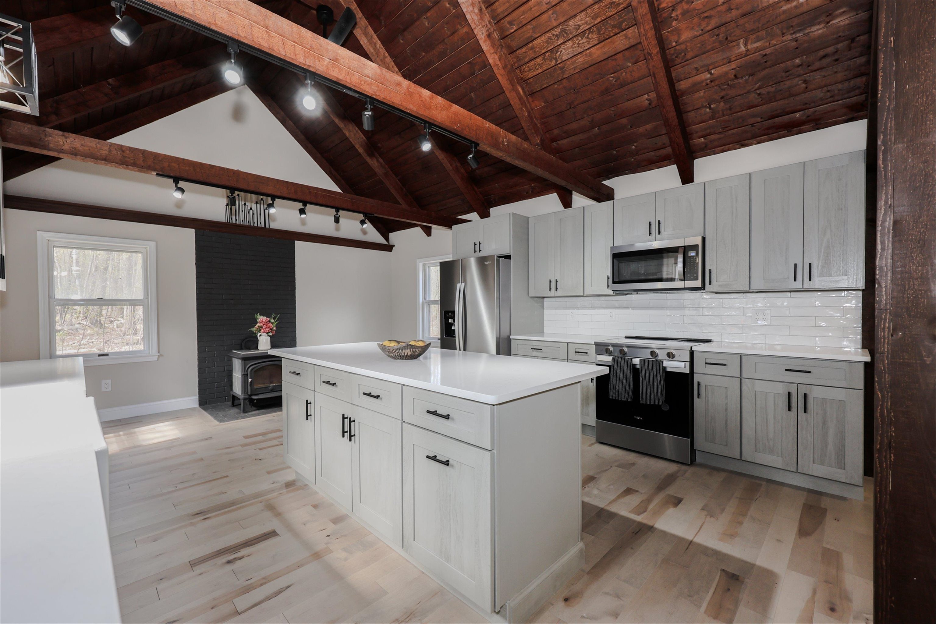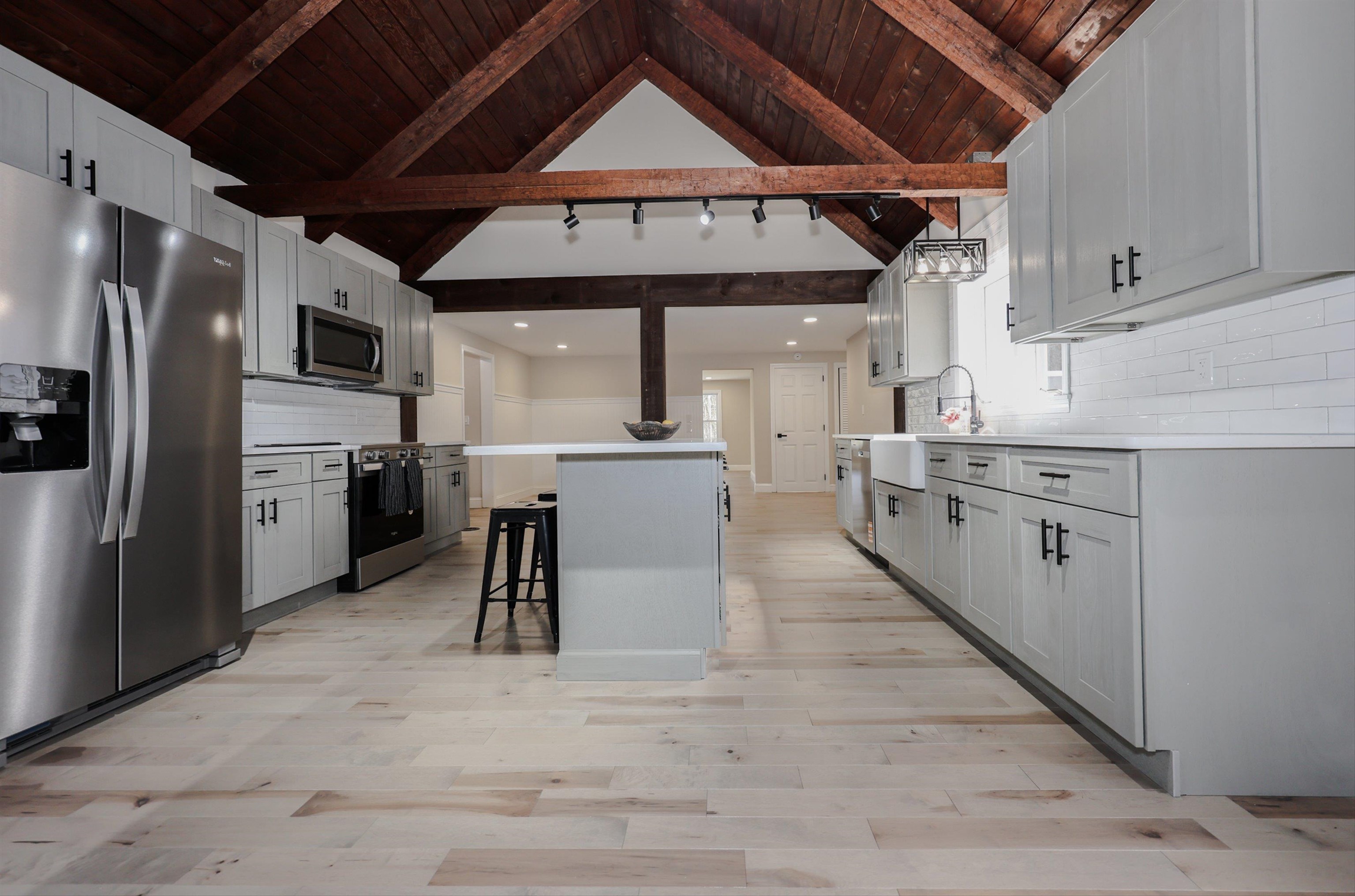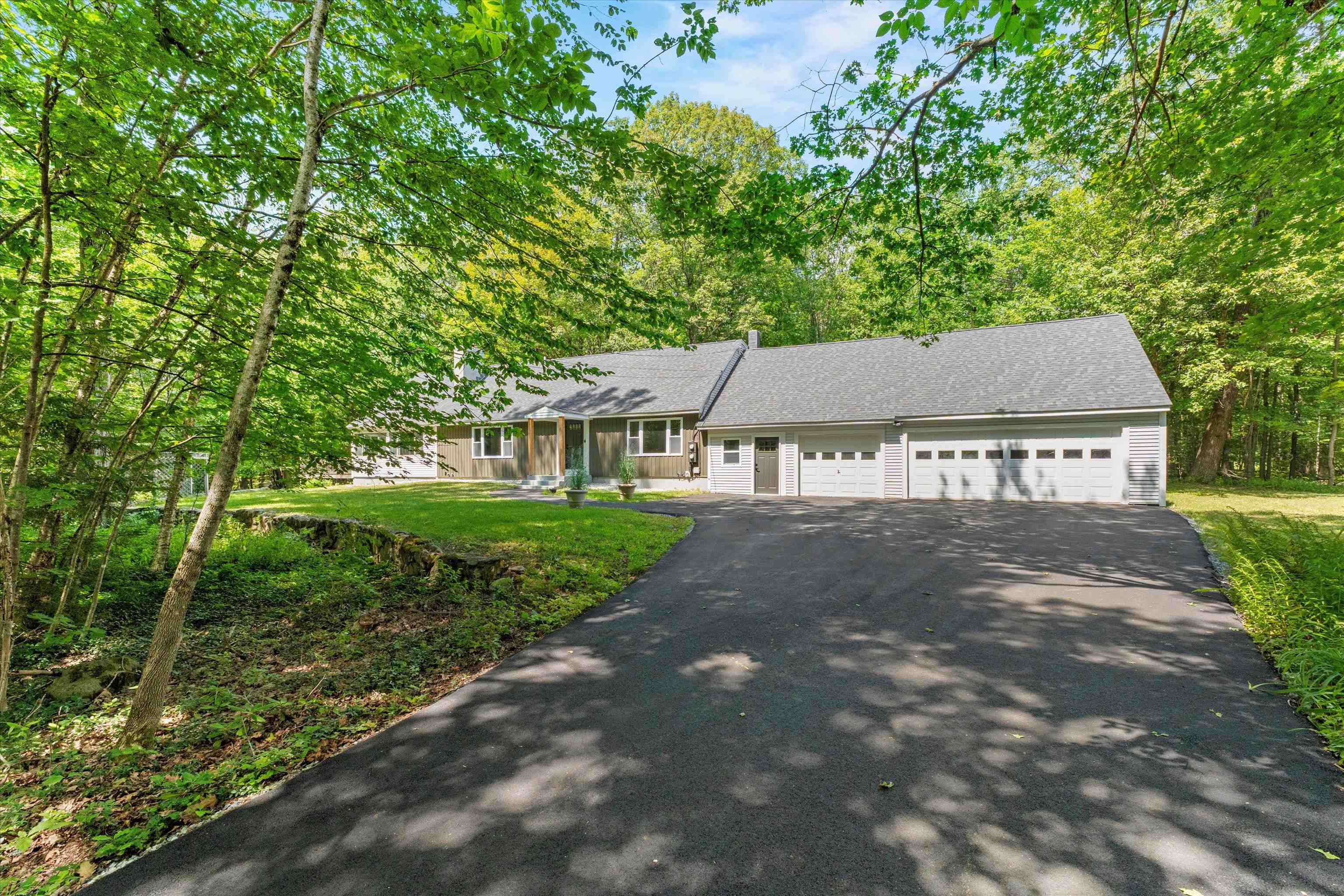 Welcome to your dream home in the picturesque town of Hancock, NH! This completely renovated gem showcases modern elegance blended with rustic charm. Step inside and be greeted by stunning cathedral ceilings that invite an abundance of natural light, creating an airy ambiance throughout the spacious open floor plan. The heart of the home is a chef's delight, featuring sleek quartz countertops and high-end appliances that make cooking a joy. Gather in the inviting living area with gleaming new maple hardwood floors, as well as the refinished original hardwood, perfect for entertaining or simply enjoying barefoot after a long day. Retreat to the luxurious primary suite, where relaxation awaits in your spa-style bathroom complete with a custom tile shower and a soaking tub—ideal for soothing baths on cool evenings. With ample storage options throughout, this home ensures every item has its place. Enjoy first-floor laundry and the ease of single-level living in a home that blends comfort, style, and space. Outside, enjoy tranquil surroundings of the tree-lined backyard and beautiful landscapes that define Hancock’s charm. Put your green thumb to use with raised garden beds ready for your next harvest. The oversized 3-car garage includes a unique pull-through rear door—perfect for extra parking or workspace. The exterior upgrades also include a newly paved driveway and walkway as well as a brand-new roof for long-term peace of mind. Whether you're looking for year-round living