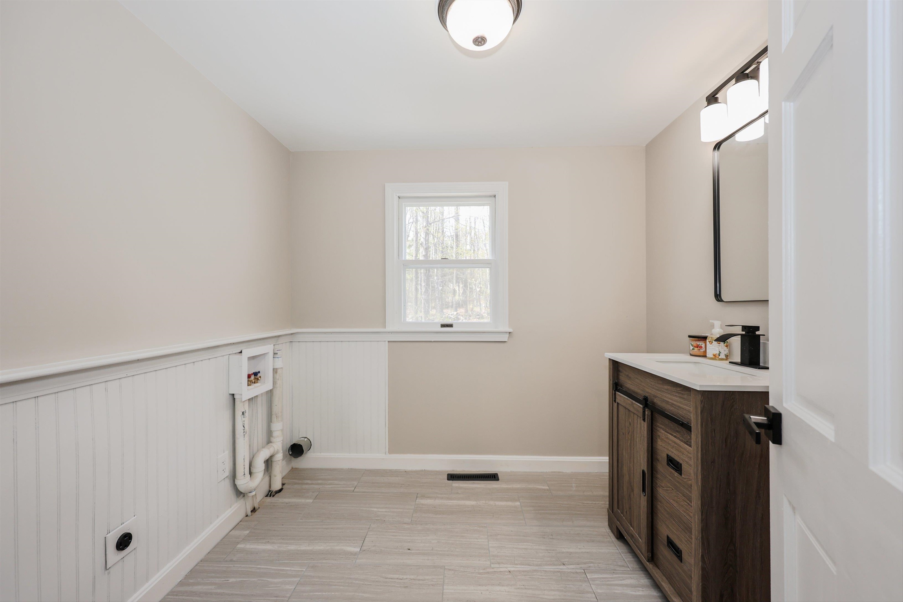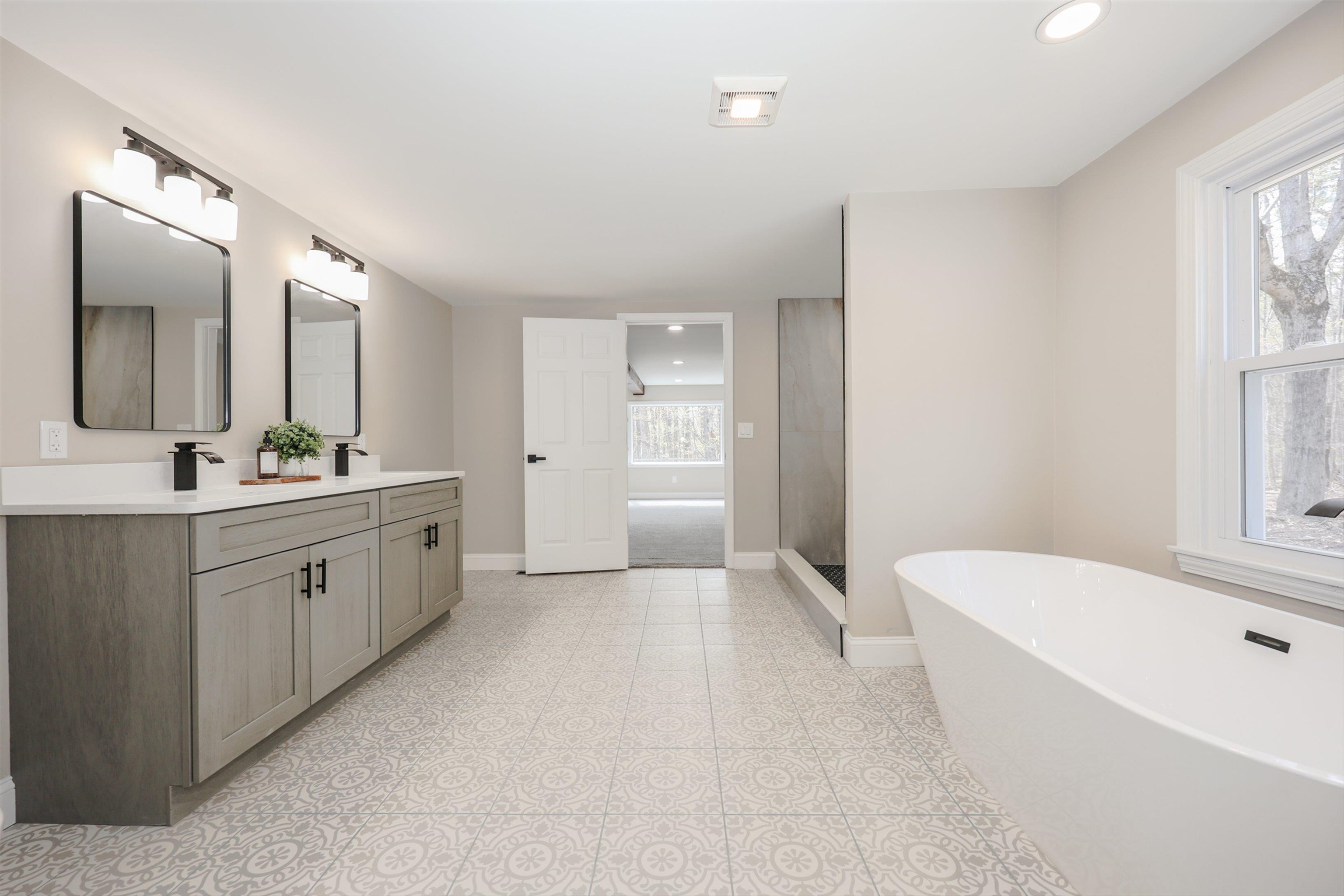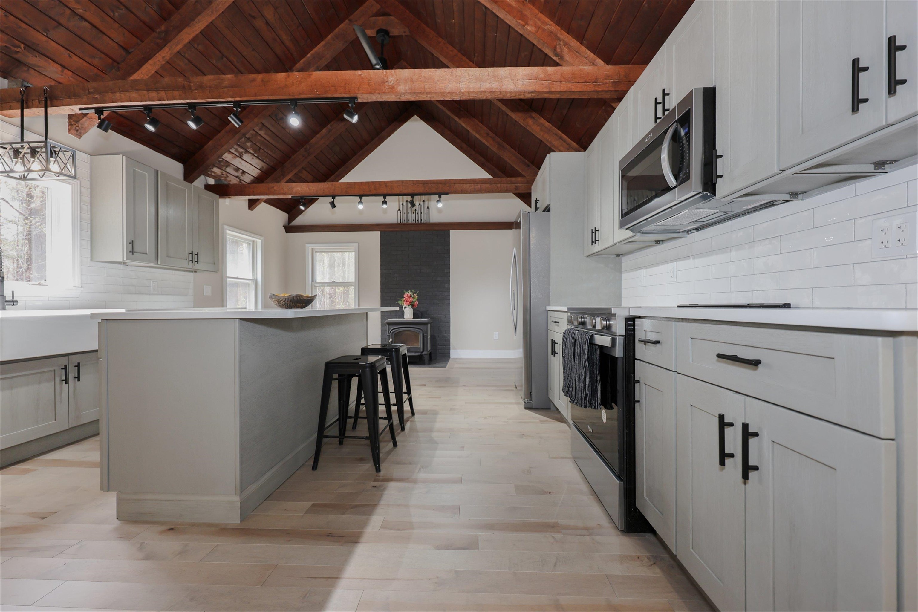 Welcome to your dream home in the picturesque town of Hancock, NH! This completely renovated gem showcases modern elegance blended with rustic charm. Step inside and be greeted by stunning cathedral ceilings that invite an abundance of natural light, creating an airy ambiance throughout the spacious open floor plan. The heart of the home is a chef's delight, featuring sleek quartz countertops and high-end appliances that make cooking a joy. Gather in the inviting living area with gleaming new maple hardwood floors, as well as the refinished original hardwood, perfect for entertaining or simply enjoying barefoot after a long day. Retreat to the luxurious primary suite, where relaxation awaits in your spa-style bathroom complete with a custom tile shower and a soaking tub—ideal for soothing baths on cool evenings. With ample storage options throughout, this home ensures every item has its place. Enjoy first-floor laundry and the ease of single-level living in a home that blends comfort, style, and space. Outside, enjoy tranquil surroundings of the tree-lined backyard and beautiful landscapes that define Hancock’s charm. Put your green thumb to use with raised garden beds ready for your next harvest. The oversized 3-car garage includes a unique pull-through rear door—perfect for extra parking or workspace. The exterior upgrades also include a newly paved driveway and walkway as well as a brand-new roof for long-term peace of mind. Whether you're looking for year-round living
