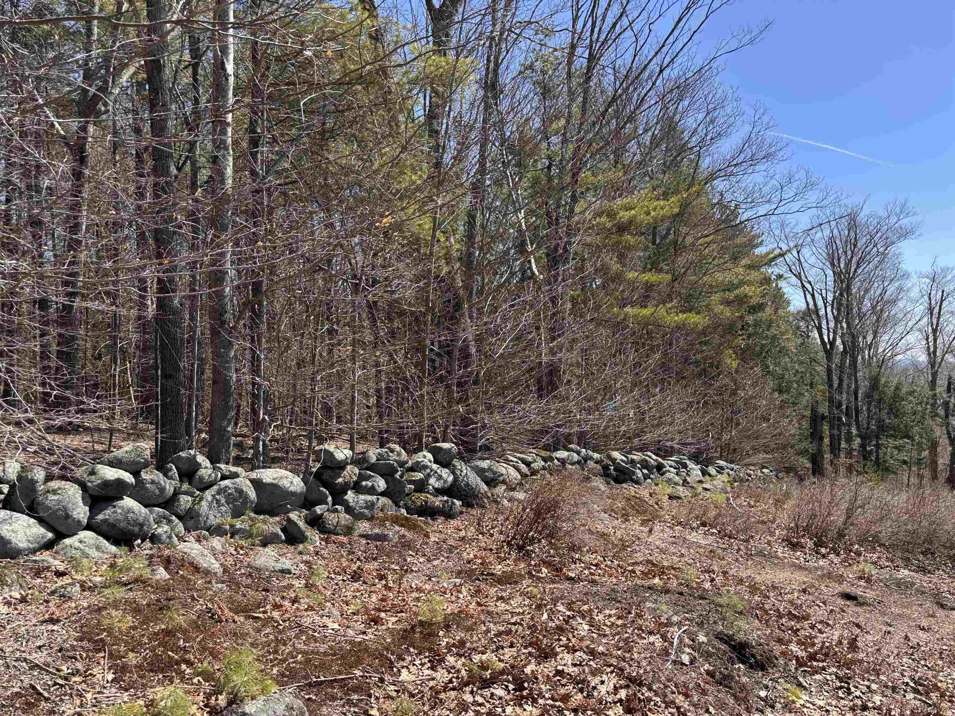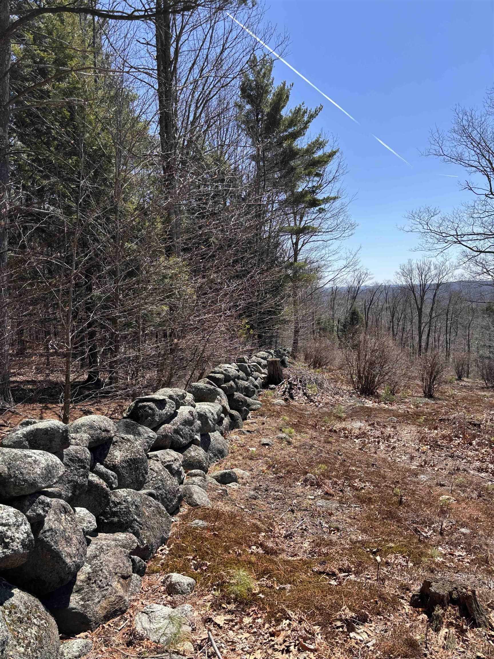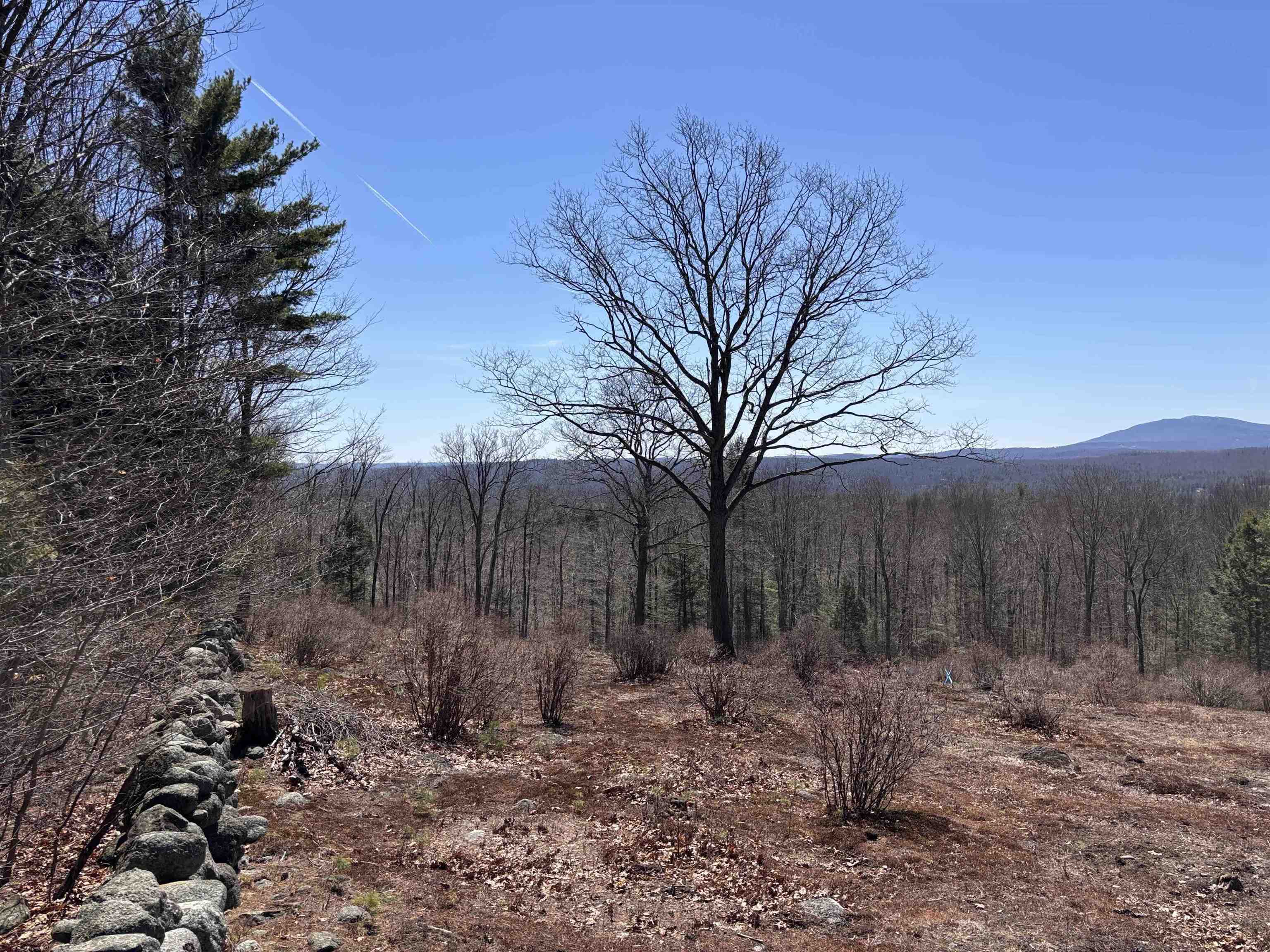 Take in sweeping views of Mount Monadnock and the peaceful charm of the surrounding countryside. This 11.28-acre hillside property features 541 feet of road frontage and offers a wonderful blend of natural beauty and potential. A partially cleared driveway begins near the road on level ground and gently climbs to an open meadow dotted with wild blueberry bushes, highlighted by a pair of impressive oak trees. Higher up, sections of classic stone walls help define an excellent spot to build, making it easy to envision your future home set into the landscape. Just minutes away, the historic center of Hancock offers small-town appeal with its café, library, the Historic Hancock Inn recently written up in the NY Times and Forbes, and local market gathered around a scenic common and traditional meeting house. Outdoor enthusiasts will appreciate the nearby access to Nubanusit Lake and Norway Pond for swimming, boating, and fishing, along with extensive trail networks through conserved lands managed by the Harris Center and others throughout the Monadnock region. The property is currently enrolled in “current use” tax status and sits less than half a mile from Route 202, offering convenient commuting options. 11 minutes to Crotched Mountain Ski Resort. It’s also ideally positioned within an hour of Manchester, under two hours from Boston, and about four and a half hours from New York City. Whether you're ready to build now or planning for the future, this parcel presents a compelling opportunity. Corner pins are marked with bright orange ribbons. Blue and pink ribbons indicate wet areas such as the small stream.