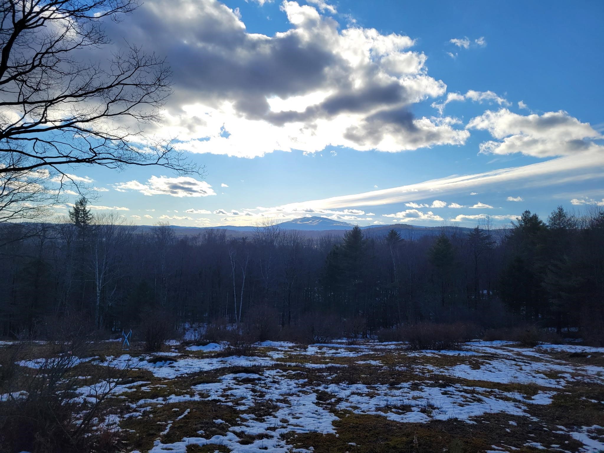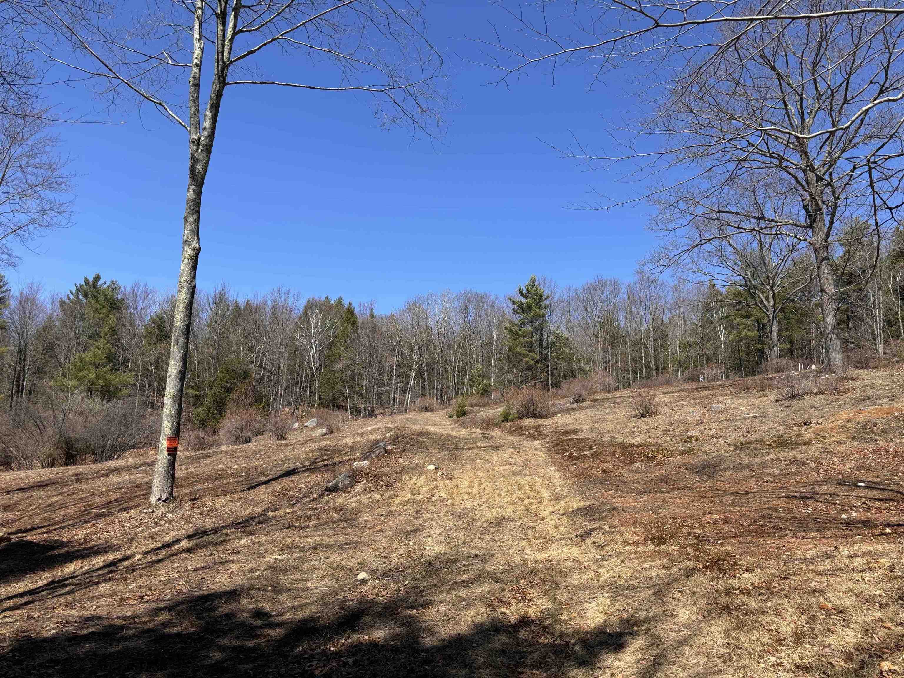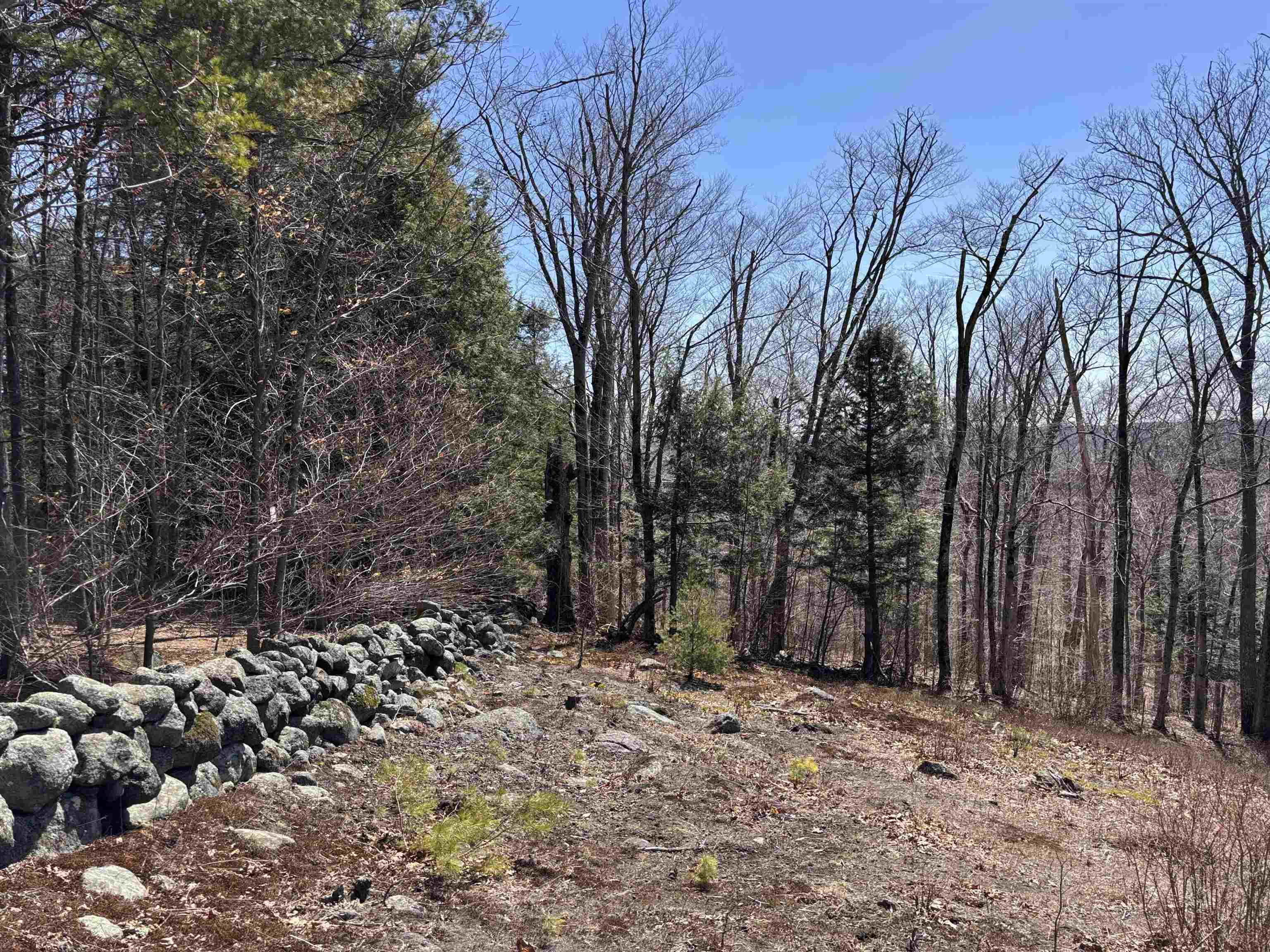 Take in sweeping views of Mount Monadnock and the peaceful charm of the surrounding countryside. This 11.28-acre hillside property features 541 feet of road frontage and offers a wonderful blend of natural beauty and potential. A partially cleared driveway begins near the road on level ground and gently climbs to an open meadow dotted with wild blueberry bushes, highlighted by a pair of impressive oak trees. Higher up, sections of classic stone walls help define an excellent spot to build, making it easy to envision your future home set into the landscape. Just minutes away, the historic center of Hancock offers small-town appeal with its café, library, the Historic Hancock Inn recently written up in the NY Times and Forbes, and local market gathered around a scenic common and traditional meeting house. Outdoor enthusiasts will appreciate the nearby access to Nubanusit Lake and Norway Pond for swimming, boating, and fishing, along with extensive trail networks through conserved lands managed by the Harris Center and others throughout the Monadnock region. The property is currently enrolled in “current use” tax status and sits less than half a mile from Route 202, offering convenient commuting options. 11 minutes to Crotched Mountain Ski Resort. It’s also ideally positioned within an hour of Manchester, under two hours from Boston, and about four and a half hours from New York City. Whether you're ready to build now or planning for the future, this parcel presents a compelling opportunity. Corner pins are marked with bright orange ribbons. Blue and pink ribbons indicate wet areas such as the small stream.