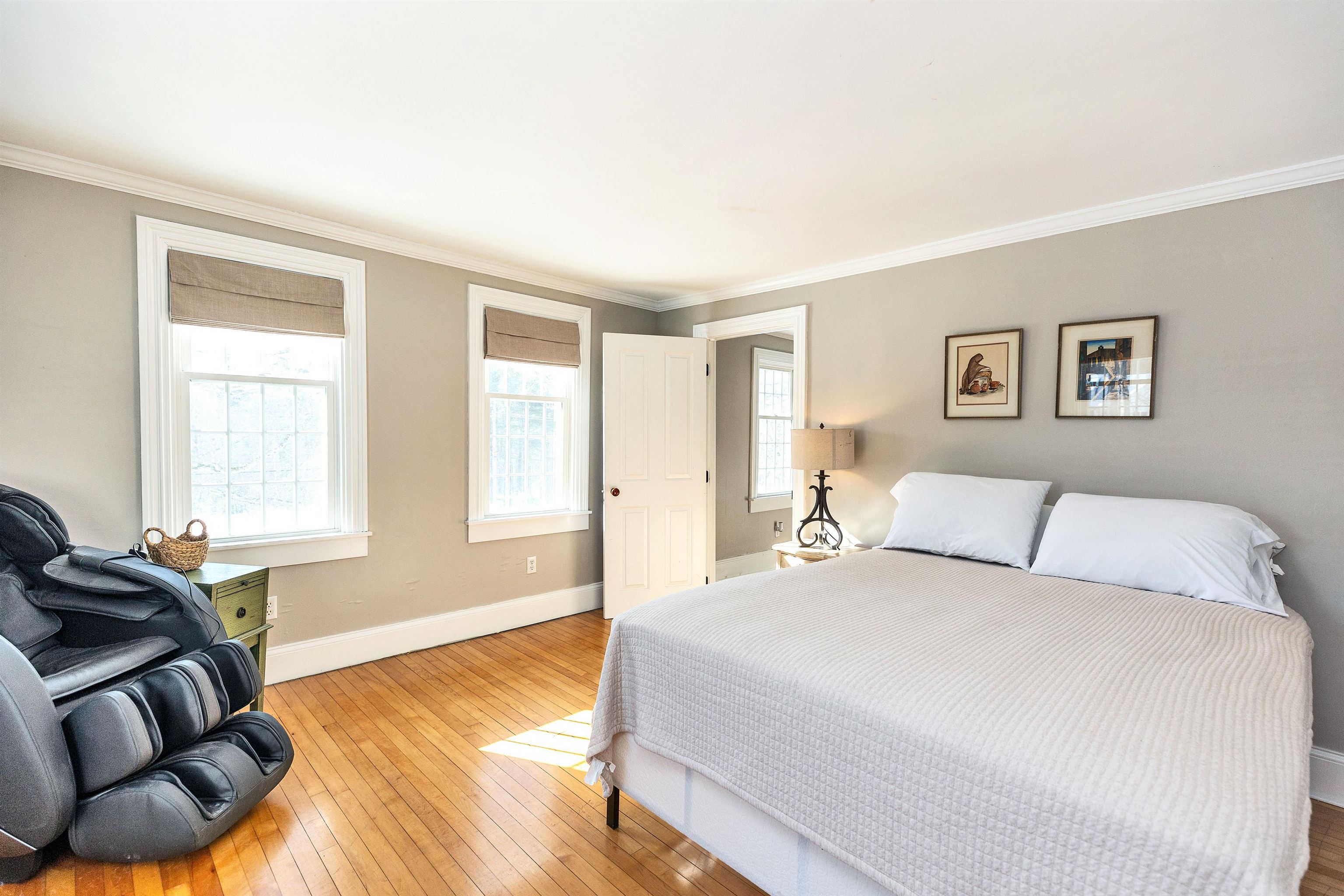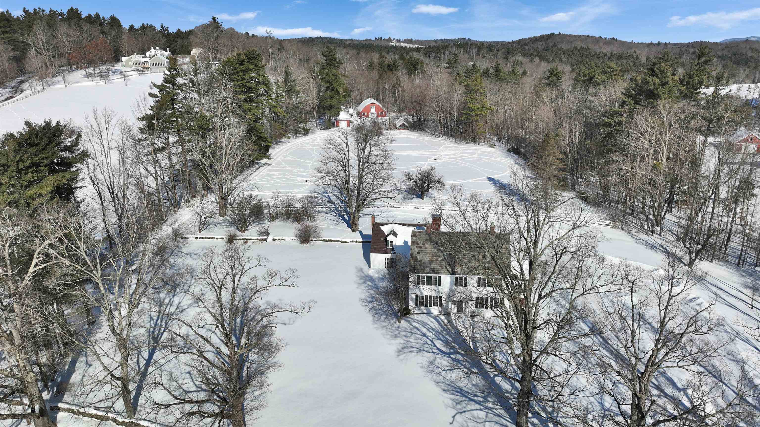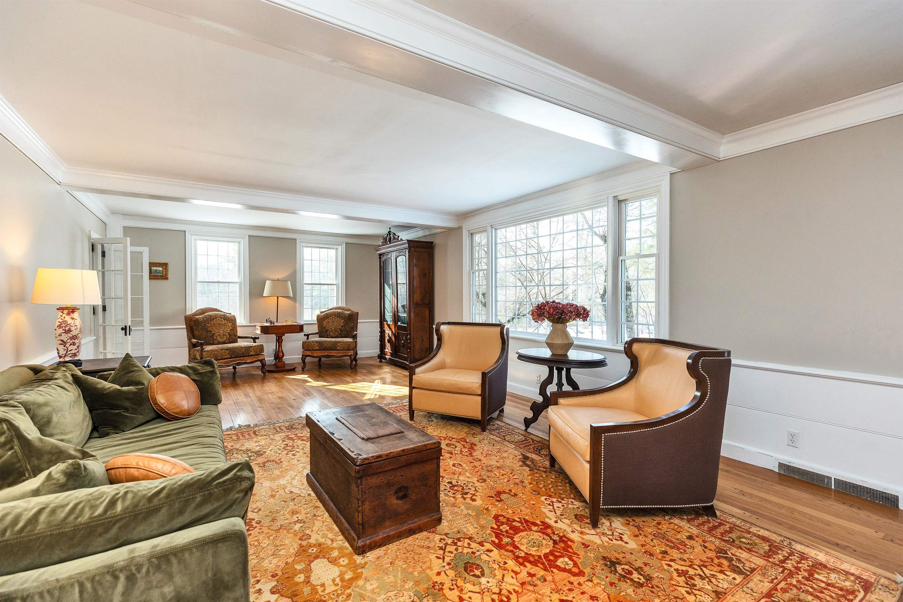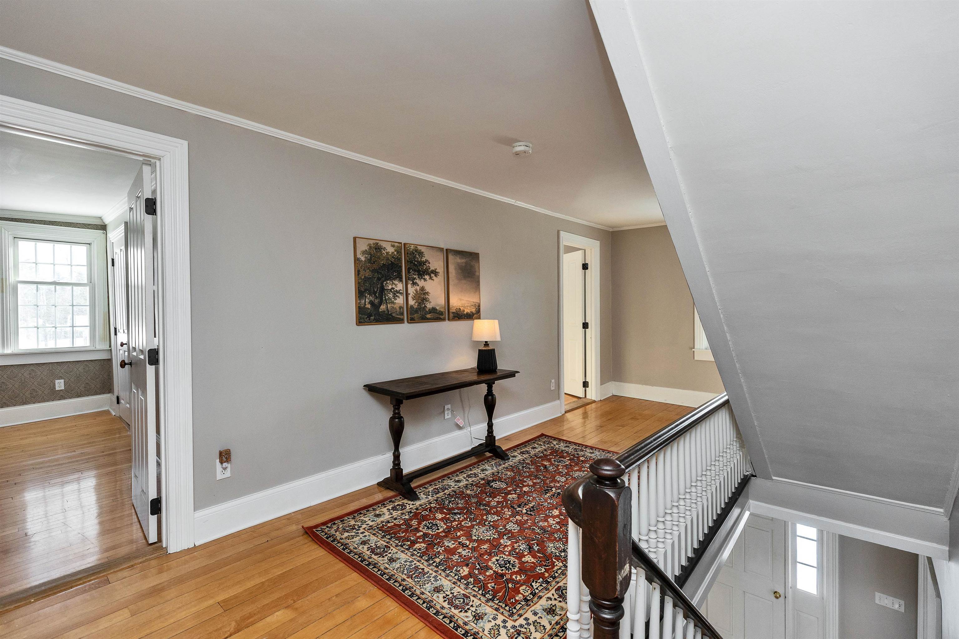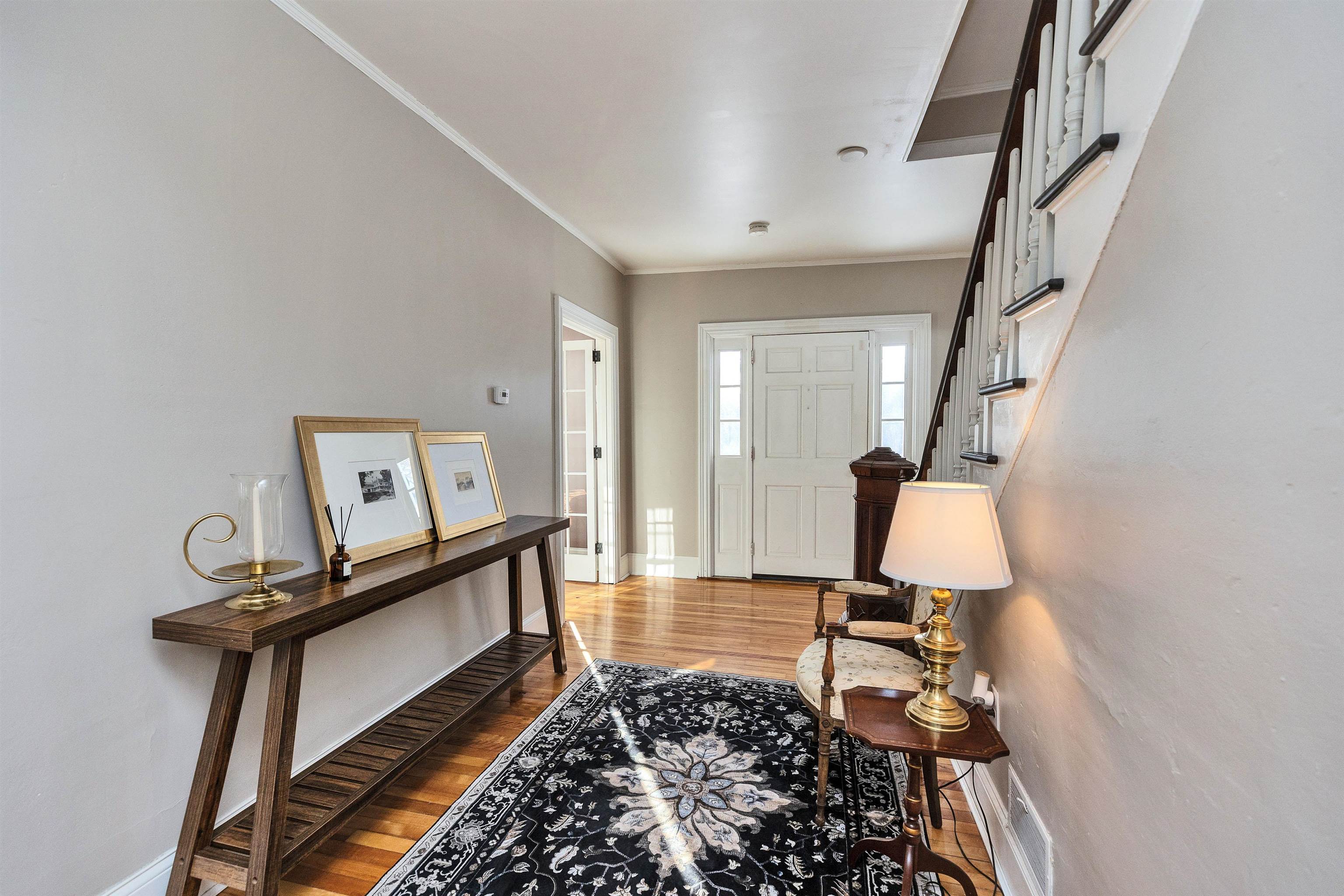 A rare offering of enduring craftsmanship, this stately residence reflects the architecture and refined proportions of a distinguished era. From the moment you arrive, the grand front entrance sets the tone, opening to a foyer and sweeping staircase. High ceilings and generously proportioned rooms define the interior, creating a natural flow for both formal entertaining and everyday living. The front-to-back living room accommodates large gatherings with ease and features a classic wood-burning fireplace. A glass-paneled study provides an intimate retreat for work or quiet conversation, while the formal dining room is richly detailed with a statement chandelier, exquisite crown molding, and custom built-in cabinetry. The light-filled kitchen is thoughtfully designed for function and performance, offering abundant cabinetry and counter space, double ovens, and a new refrigerator. A well-appointed mudroom connects the home to the three-car garage, above which a substantial finished bonus room with electric heat offers flexible space for guests, a private office, or creative pursuits. Upstairs, a gracious central hall leads to four spacious bedrooms. Two may be combined to create a luxurious primary suite, complemented by a newer bath between two bedrooms, an additional full bath off the hall, and plenty of closet storage. A full walk-up attic presents exceptional potential for future living space. The entire interior has been freshly painted, and the home is certified lead paint-free for peace of mind. The grounds extend the lifestyle beyond the home itself. Equestrian amenities include a five-stall barn with a second-story hayloft, a large fenced pasture, a basement in the barn for farm equipment, and additional outbuildings. Whether envisioned as an equestrian property or a legacy residence, this exceptional home offers versatility and timeless appeal.