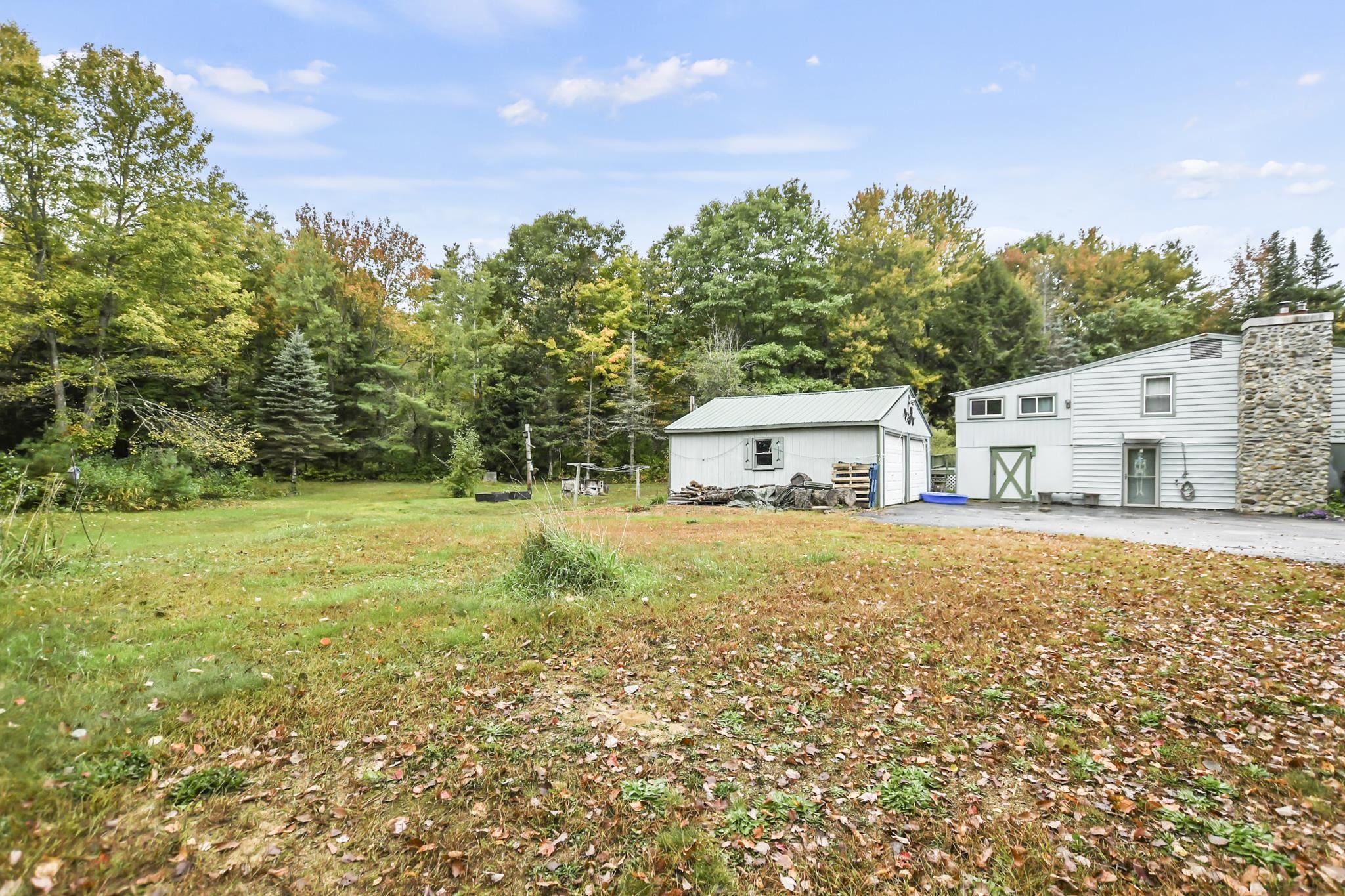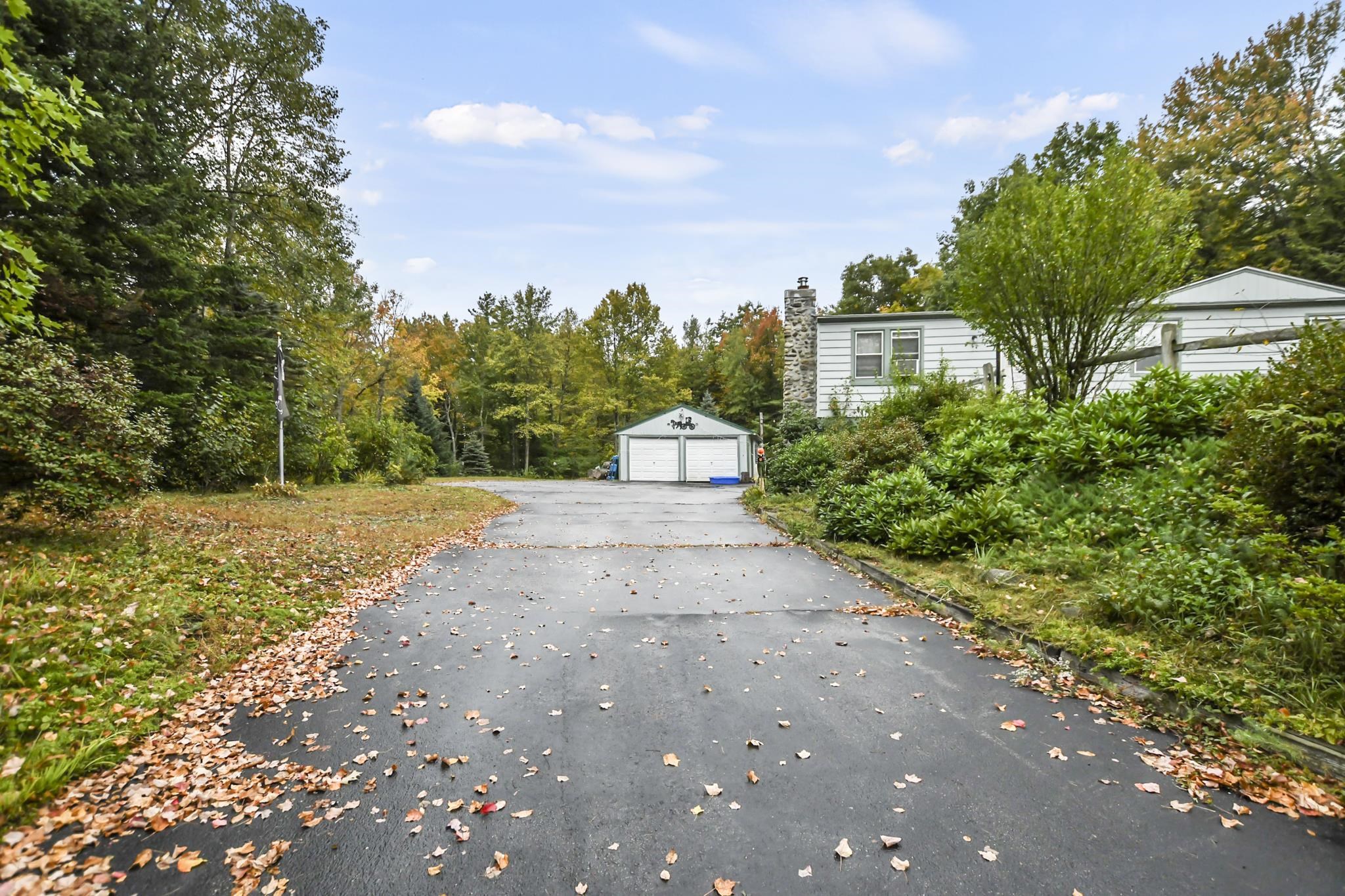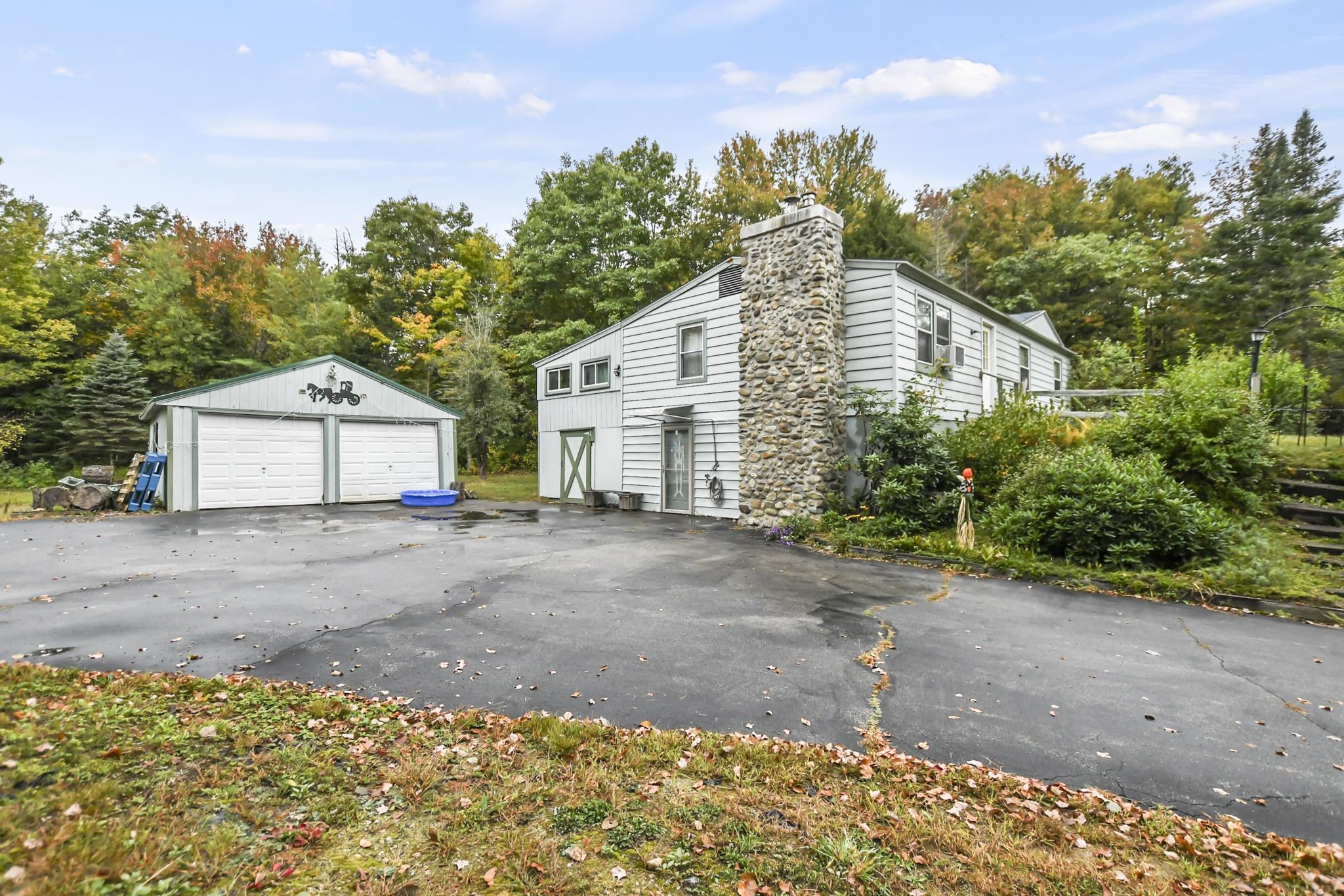 Nature lovers rejoice! This charming 3bed, 1.5bath home set on a private 1.5 acre lot awaits! The living room offers a cozy atmosphere with a wood stove, while the kitchen stands out with stainless steel appliances, and an inviting dining area. Just beyond the dining space, a sun-room is perfect for relaxing year-round. The primary includes a private 1/2 bath, and 2 additional bedrooms are served by a full bath. Lower level offers a family room and flexible bonus space to suit your needs. Outside the large back deck is ideal for entertaining or unwinding amidst peaceful surroundings. The expansive yard is a gardener’s dream, with perennials blooming throughout spring and summer, as well as a pear tree, apple tree, and raspberry bushes. A detached two-car garage offers additional storage for added convenience. The house is equipped with a portable generator hookup. Home has a newer roof (less than 2 years old) new hot water tank, less than a year old, 2022 Whole house water filtration w/uv light system Make it yours today!