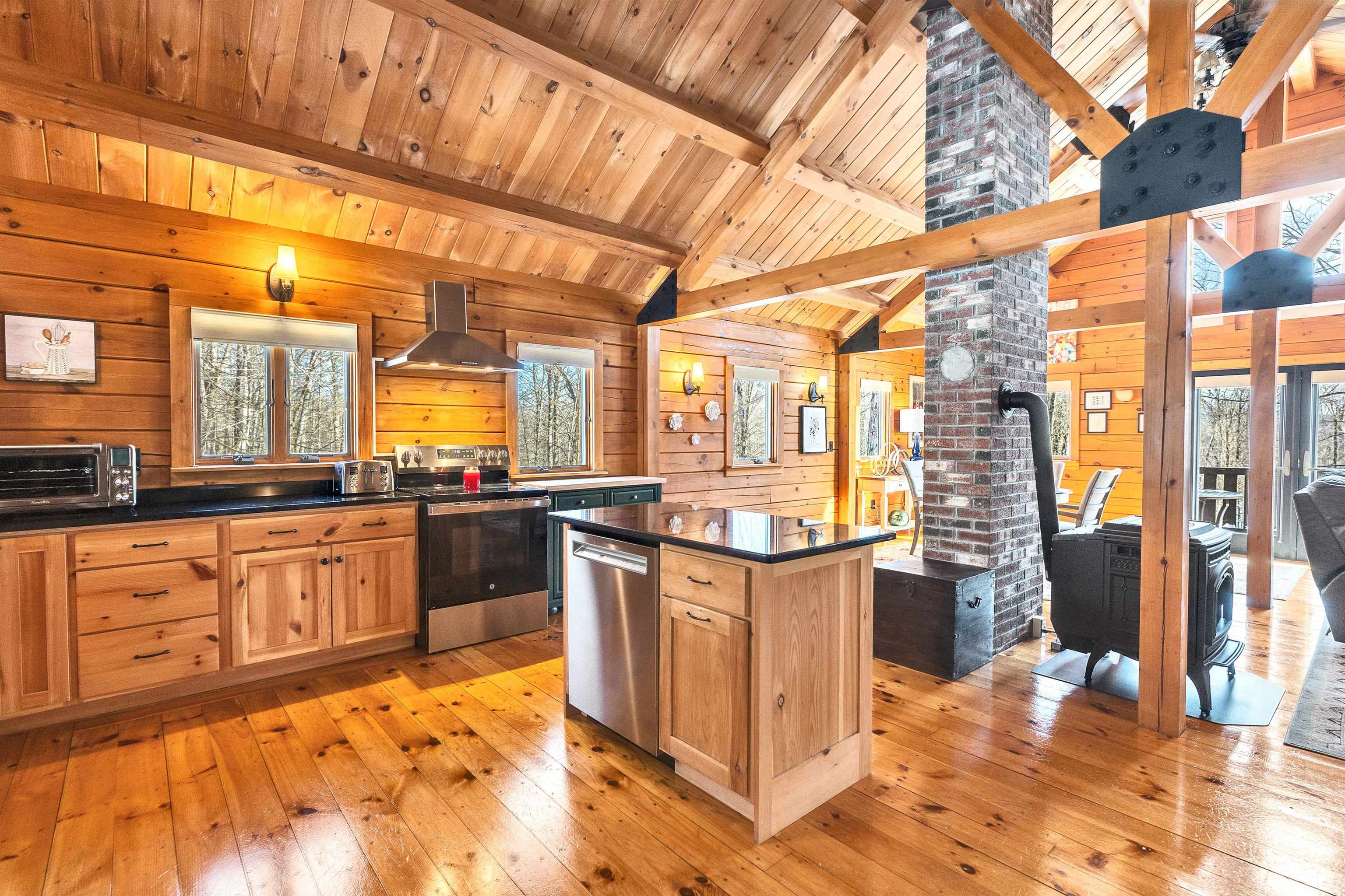 Experience the charm and craftsmanship of this beautiful Coventry log home, privately sited and offering coveted water rights. Showcasing the artistry and enduring quality of true log construction, the residence blends rustic elegance with refined comfort. The main living level is thoughtfully designed for both relaxed living and sophisticated entertaining, highlighted by a striking cathedral ceiling and expansive windows that bathe the interior in natural light. The open-concept layout creates a seamless flow between living, dining, and gathering spaces, with two pellet stoves that enhance the home’s warmth and character. Recent enhancements include new kitchen appliances, window blinds, and interior and exterior staining, preserving both aesthetic appeal and structural integrity. The beautifully renovated full bath offers a serene, spa-inspired experience featuring a soaking tub and separate shower. Three well-proportioned bedrooms provide flexibility for guests, a private office, or creative studio space. The finished lower level offers exceptional versatility, ideal as a recreation room or a guest suite, with its three-quarter bath and a dedicated laundry area for added convenience. Additional upgrades include a new roof, gutters, a well pump, a water filtration system, electrical service to the shed, and a whole-house generator for peace of mind. Set within the Hidden Lake Association, this property enjoys access to a cherished lakeside community known for its natural beauty and relaxing atmosphere. Here, everyday living feels like a year-round retreat!