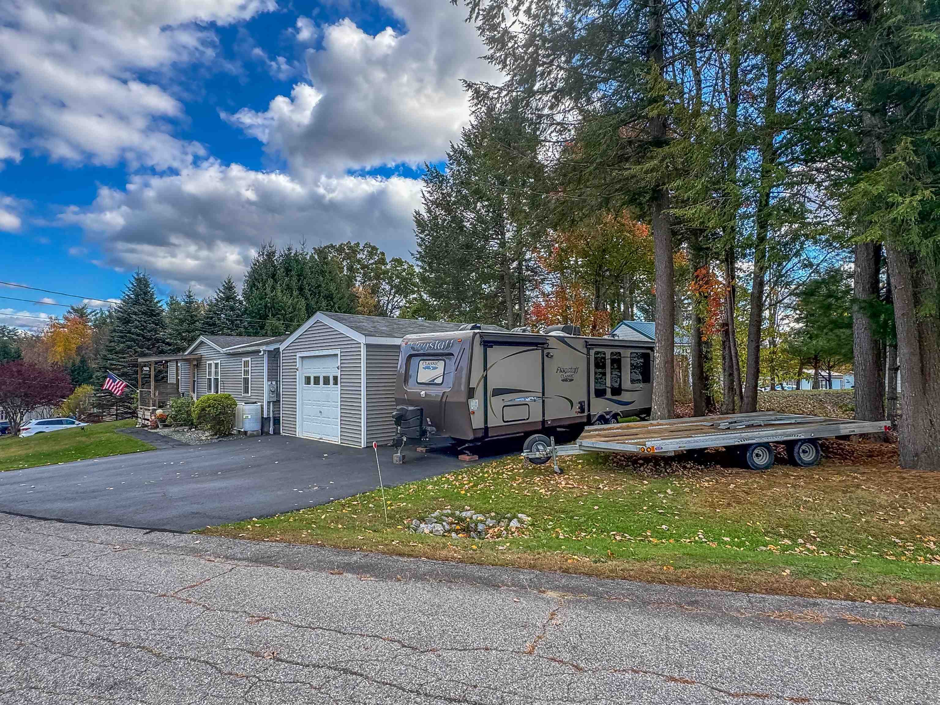 Move right in! This beautifully updated 3-bedroom, 2-bath manufactured home in View Point Co-op has been thoughtfully improved from top to bottom. The primary suite features a large closet and private en suite bath, while the two additional bedrooms are located on the opposite side of the home for added privacy. Enjoy an eat-in kitchen with solid maple cabinetry, stainless steel appliances, and new flooring throughout! Additional upgrades include a new roof, new exterior with siding and windows, and a newly built front porch. Outside, you’ll find a 24x16 Alaskan slab pass-through garage (with its own panel), fenced backyard, two storage sheds, and RV parking with power hookup. Ideally located close to trails and outdoor recreation, yet only 10 minutes from shopping, groceries, restaurants, and downtown Keene. Truly like new, this home offers comfortable, modern living in a welcoming community.
