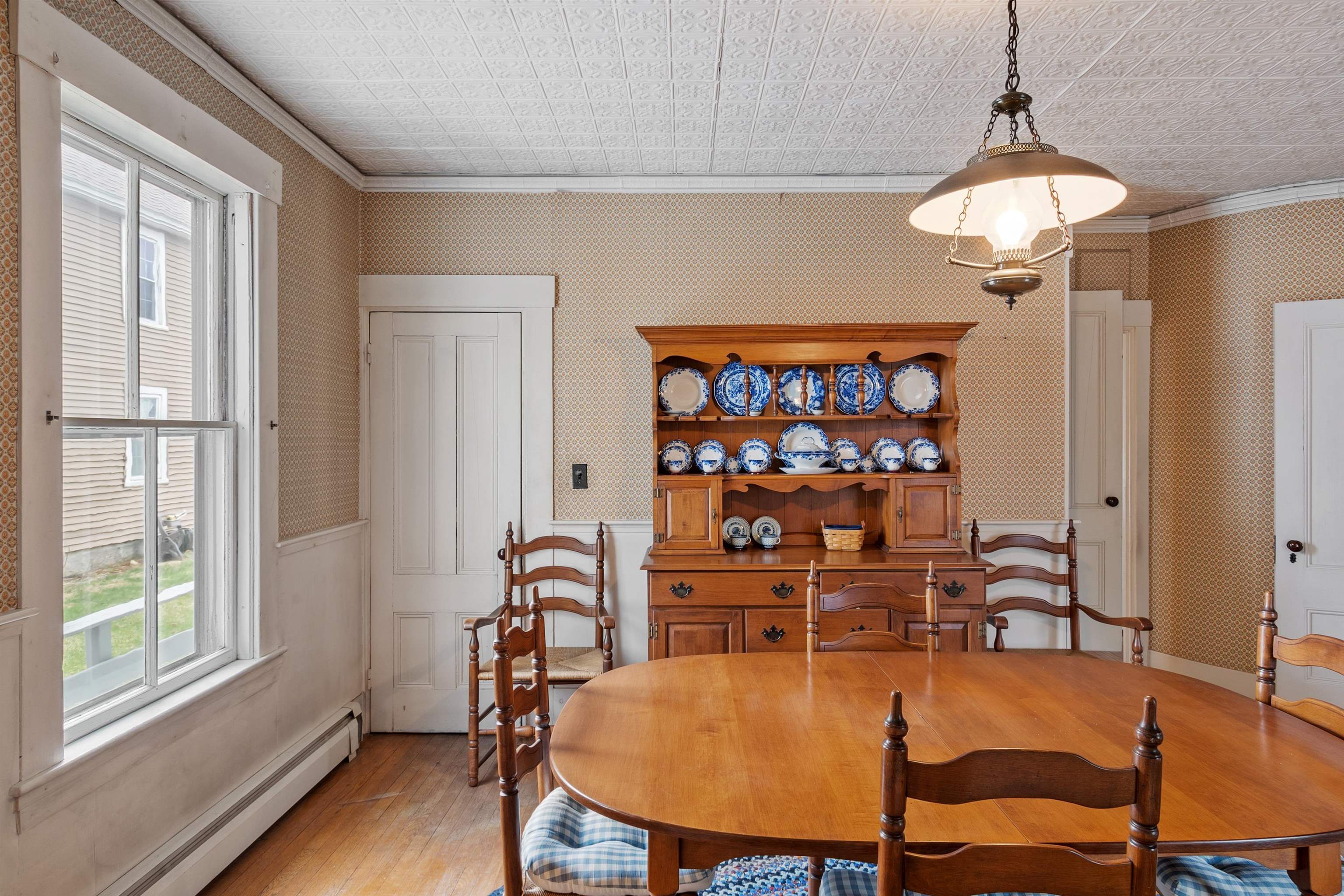 You cannot go wrong with this ‘Spectacular’ price improvement on this charming Wilton antique ~ now offered at $365,000.00. A quality property such as this one is hard to beat at this price point in Hillsborough county. This charming Wilton antique is truly unique with features like tin ceilings, built-in bookshelves, and living room with fireplace, brick hearth, pine mantel and built -ins. One-of-a-kind homes such as this often carry with it a lot of character and history. A spacious kitchen, dining room, cozy living room, and den make the first floor feel both functional and inviting. The upstairs consists of 3 bedrooms and a full bath. The larger bedroom has a walk-in closet and access to the walk-in attic area that offers room for further expansion if desired. Two other good size bedrooms round out the second floor. The basement has a newer furnace, lots of workbenches, and plenty of room for storage. There is also a 1-car attached garage. Situated on a small, easy to maintain lot, this is the ideal home for someone not wanting to do a lot of yardwork. Located within walking distance of the playground and Carnival Hill just up the road for tennis, basketball, a ball field, hiking, winter sledding, and there are other recreation opportunities not far from your doorstep. The Wilton Town Hall Theater, Post Office, and other small Main Street businesses are just down the hill. Arrange for your private showings of this very special home.