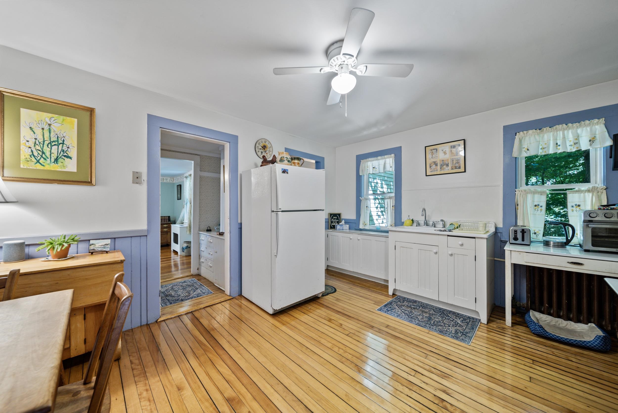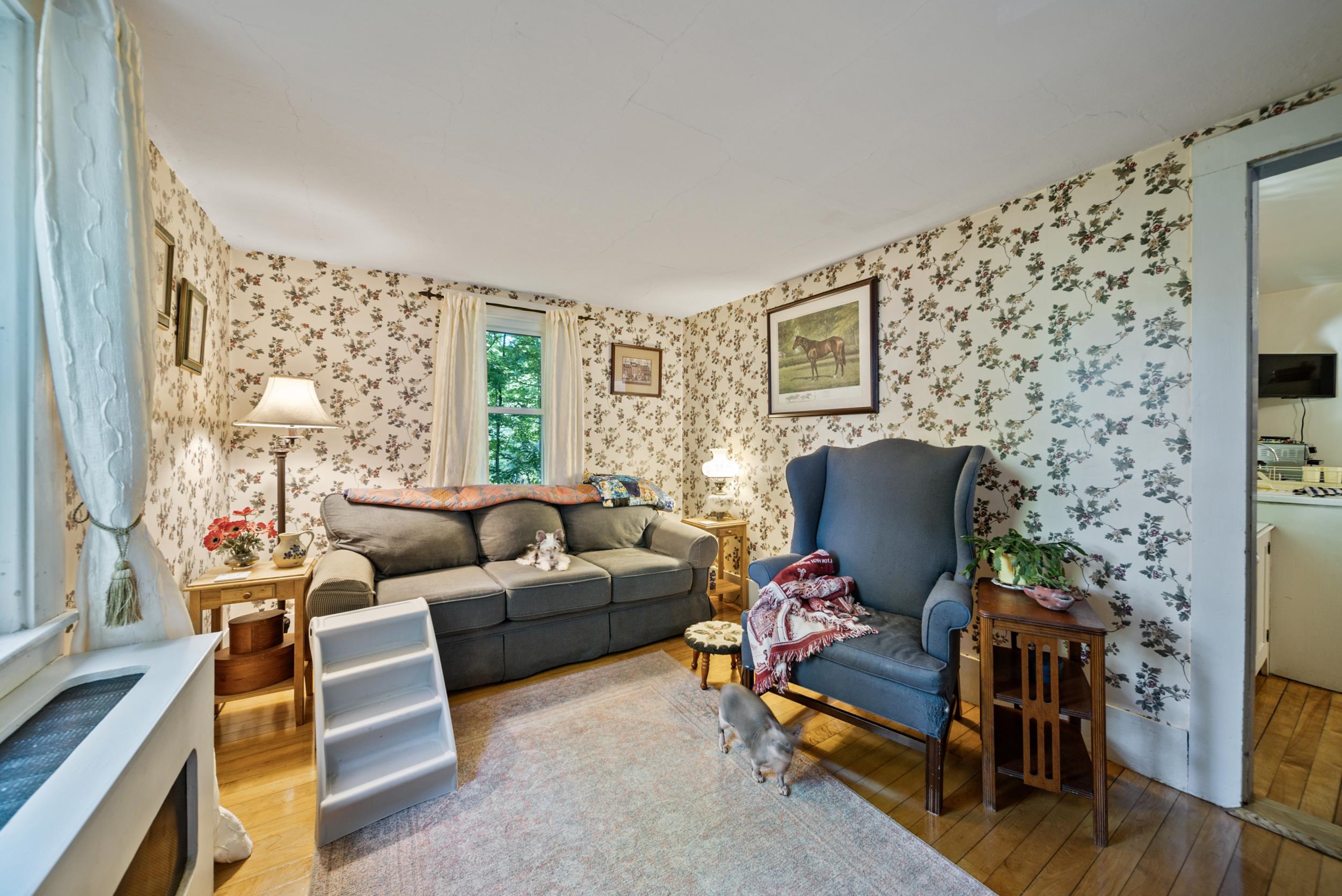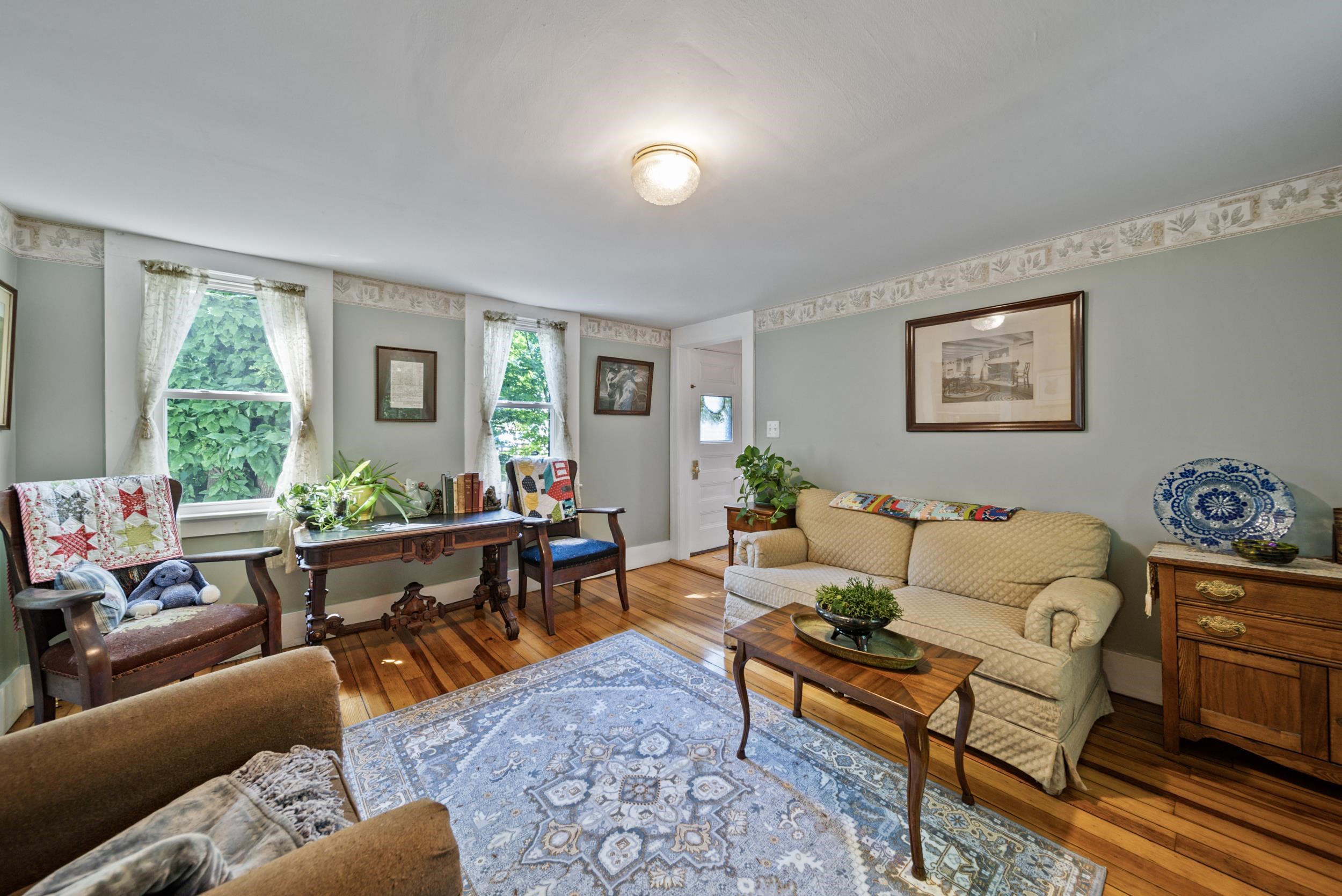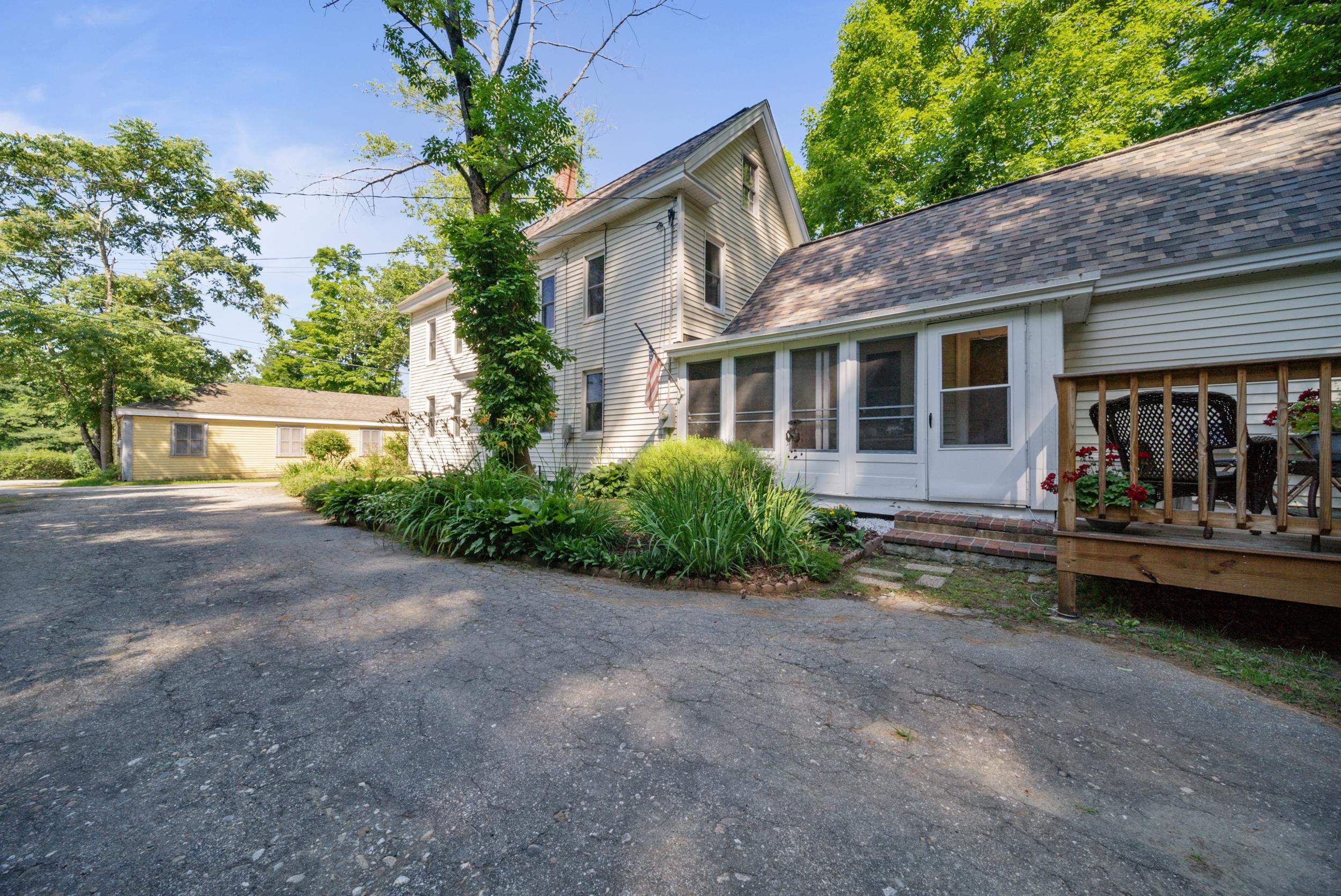Well maintained and recently updated 3 Bedroom 1.5 bath antique bursting with character tucked away in a quiet, established neighborhood. Step through the three season porch and through the tiled mudroom/laundry room and then into the open kitchen featuring gleaming wood flooring and a nice pantry. First floor's also complemented with a half bath, delightful built-ins, three additional rooms that can be used for a formal dining room, den, living room, or office. All but one of the first floor rooms has refinished wood flooring and in one of them the wide pine wood floors were painted and could be refreshed. Upstairs you'll find a sizable primary bedroom, two other bedrooms (one without a closet and flooring needing refinishing as well) and a full bath. Nice level lower yard are perfect for outside fun...all sited on a quiet side street cul de sac neighborhood with barely a dozen homes and is within walking distance of downtown Wilton and all it has to offer. In the last several years, the roof, vinyl siding, water heater and boiler as well as the deck were all replaced. You will also find efficient vinyl replacement windows too!. Ample storage in walk-up attic accessed through Laundry room. All served by town water and sewer, this home will be sure to please and offer many years of worry free living, and truly just needs some cosmetics (paint) to truly make it shine again. Should go FHA or VA no problem at all. Closing August 23 at the earliest.