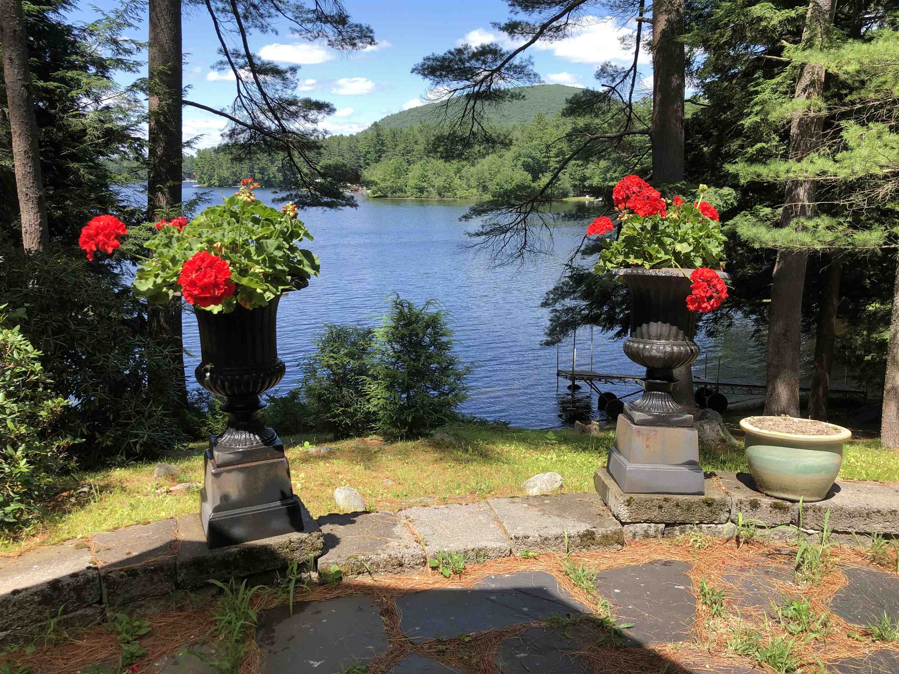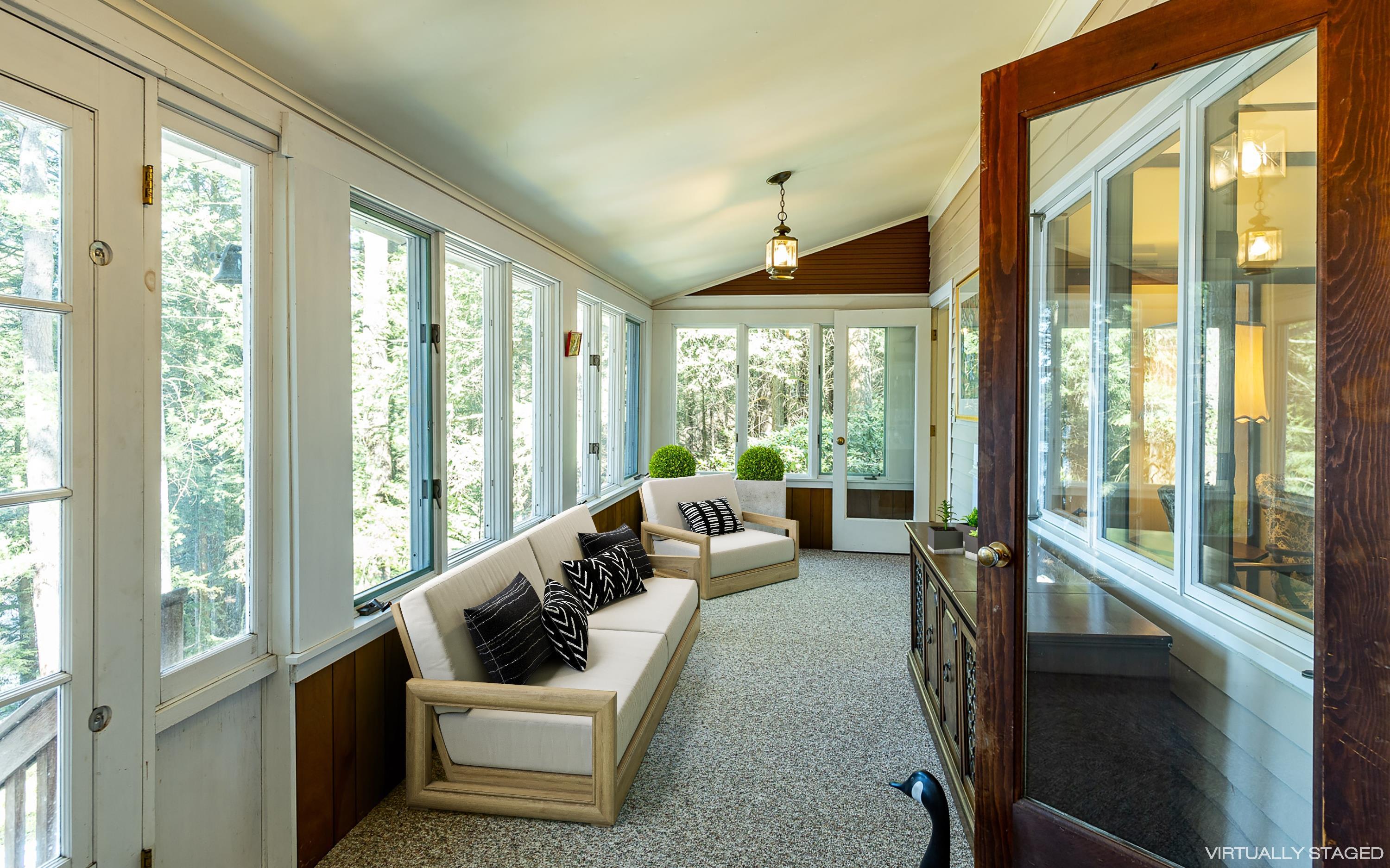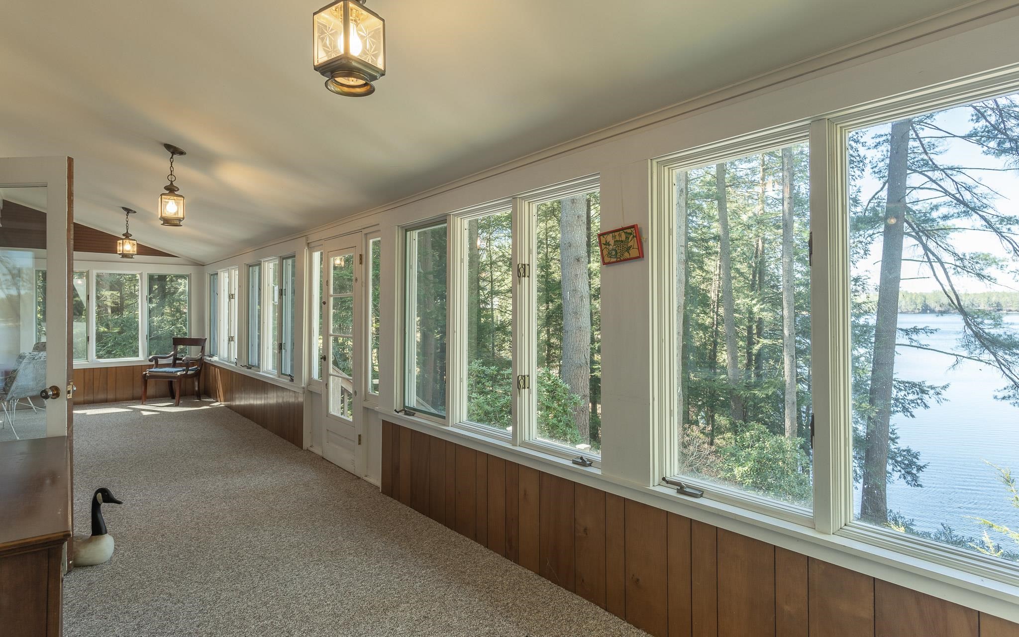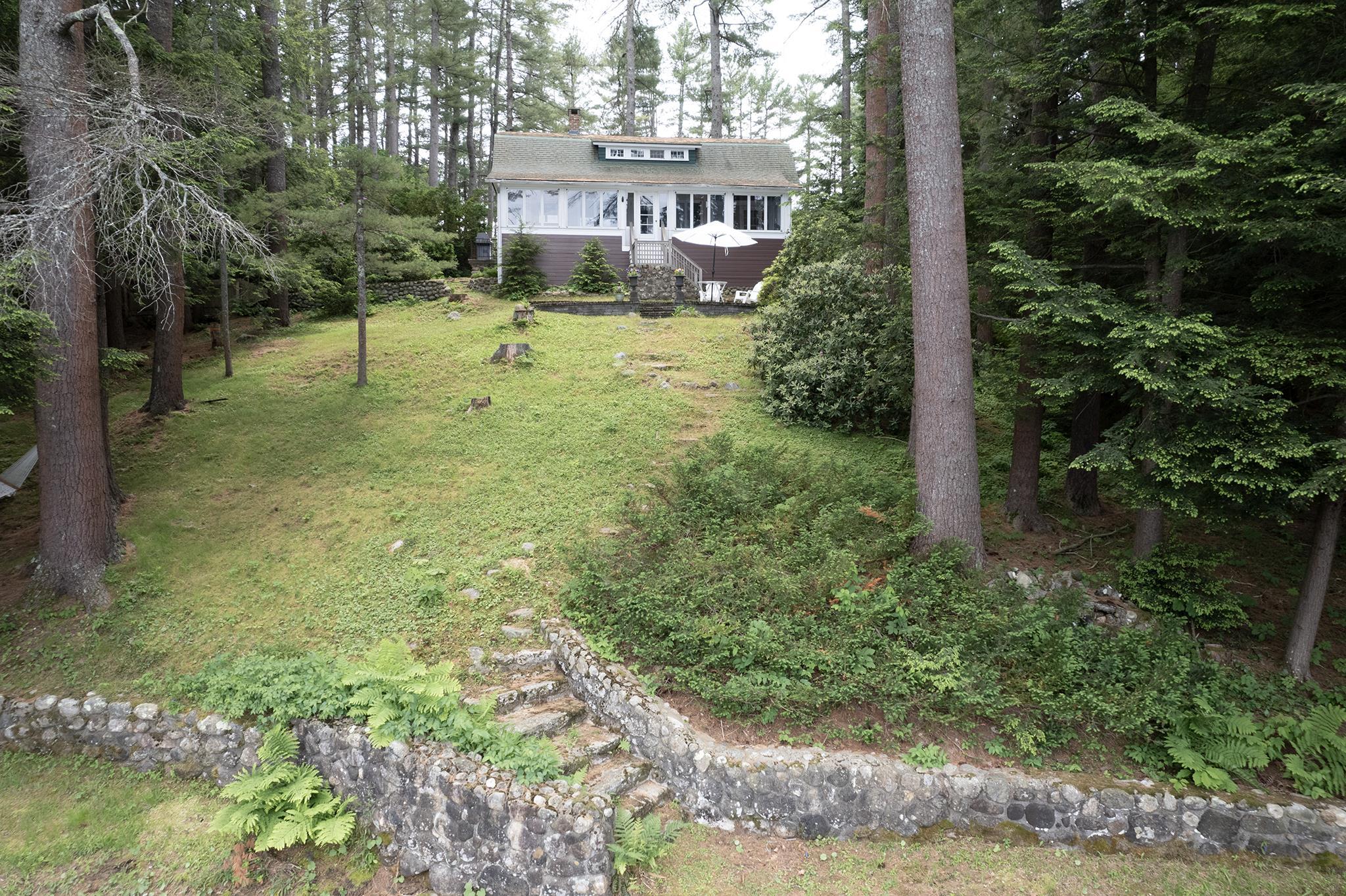 Three contiguous properties discreetly tucked away on a quiet street, breathe privacy! The year-round Dutch-Colonial cottage, Pine Lea, synonymous with gracious living for over 100 years, is situated on more than 2 acres of waterfront nestled in the south cove of Forest Lake. The handcrafted granite rock bulkhead defines its waterfront with a total frontage of more than 200 feet. A fully enclosed wrap-around porch delivers unobstructed views of the lake and Mount Gardiner. There is a ¾ basement, with separate furnace room, ample changing room with ½ bath, space for ping pong and storage for kayaks. Recent kitchen and bathroom renovations were made to enhance the spirit of the original design – the wood panels, the fireplace, high chandeliered ceiling surrounded by the open floor mezzanine accommodates areas for projects and relaxation. The property card indicates this is a 2-bedroom, but it has been used as a 3-bedroom. The two-car garage with mansard cedar roof is next to expansive lawns, ideal for tennis, badminton, touch football, croquet or volleyball. A private retreat for you and your extended family. Imagine the possibilities! "Treasures are hidden away in quiet places. They speak in soft tones and often become silenced as we approach. They don’t beg to be found, but embrace us if we do happen to find them." Craig D. Lounsbrough